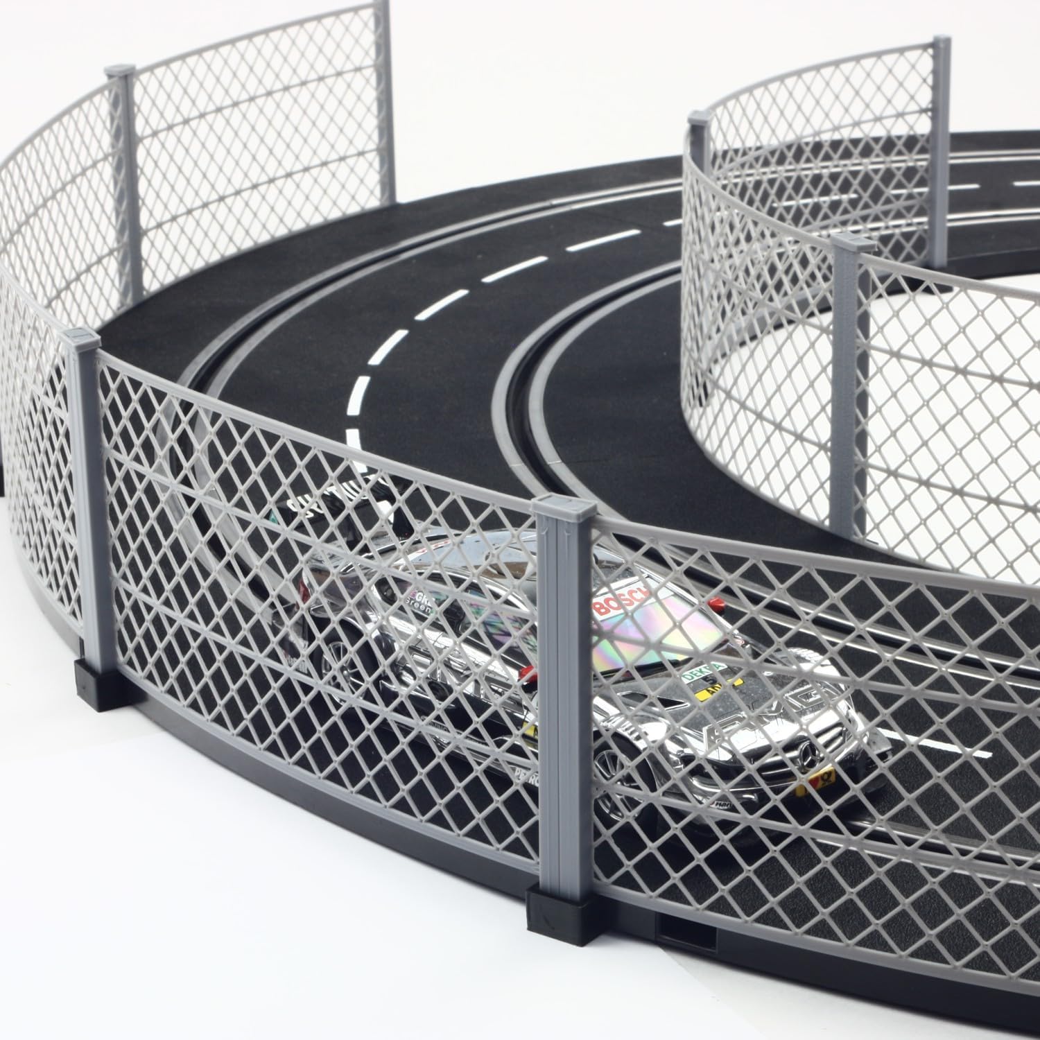 Con la recinzione di sicurezza di Overdrive-Racing trasformerete la vostra carreggiata in una vera pista da corsa. I pali della recinzione sono montati sul lato della carreggiata e si adattano sia ai rettilinei che alle curve. La recinzione si inserisce perfettamente sotto la pista o sotto i nostri cordoli Overdrive-Racing. L'altezza della recinzione corrisponde perfettamente all'altezza delle parti originali del binario Materiale: stampa PLA (alta qualità di stampa) - Colore: grigio - Fissaggio: sistema a innesto - Nessun scolorimento dovuto alla luce solare - Spessore del materiale perfetto (nessuna flessione/deformazione) - Dimensioni dell'elemento della recinzione: 16,5 cm x 0,5 cm x 8,8 cm - Lunghezza della recinzione: ca. 1000 cm I veicoli e le rotaie mostrati nelle foto sono solo a scopo illustrativo e non sono compresi nella fornitura!