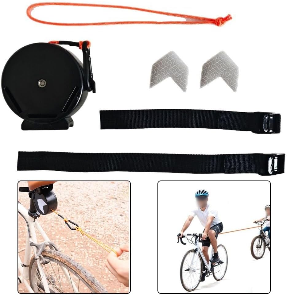 Costruzione di sicurezza: progettata con materiali ad alta resistenza per supportare fino a 90 kg, fornendo un supporto affidabile per i giovani ciclisti che imparano a guidare. Design retrattile: dispone di un meccanismo di ritrazione liscio che regola automaticamente la lunghezza della corda da 0,5 m a 2,5 m per un controllo ottimale durante le partenze, le fermate e le curve. Visibilità a 360°: include 2 strisce riflettenti e 3 cinghie dai colori vivaci per una visibilità sicura durante le passeggiate mattutine o le escursioni al tramonto. Compatibilità bicicletta: funziona con la maggior parte delle bici per bambini, balance bike e configurazioni di ruote da allenamento - ideale per parchi, sentieri e giostre di quartiere. Strumento per costruire la fiducia - Fornisce ai genitori un controllo preciso consentendo ai bambini di sviluppare l'equilibrio e le capacità di guida al proprio ritmo.