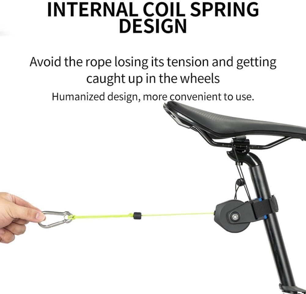 Soluzione di traino efficiente: garantisci ai bambini corse facili e controllate con questo sistema retrattile per fune di traino per bicicletta, perfetto per gite in famiglia, consentendo ai giovani piloti di mantenere l'equilibrio mentre ti seguono dietro di te su vari terreni Design autoritrattante: dotato di un meccanismo retrattile liscio che si estende fino a 2,5 metri, questo sistema di traino per bici fornisce una trazione stabile tra le biciclette e si adatta facilmente a urti o pozzanghere senza grovigli Compatta e portatile: pesa solo 200 g, questa corda leggera è portatile e può essere comodamente riposta in qualsiasi zaino, rendendola perfetta per avventure in bicicletta durante i viaggi senza aggiungere ingombro Installazione rapida: progettata con robuste estremità elastiche e un connettore frizione che si attacca saldamente dietro il reggisella, questa corda per la trazione della bicicletta non richiede attrezzi e può essere montata in pochi istanti Uso focalizzato sulla sicurezza: migliora le esperienze di ciclismo all'aperto per i bambini aiutandoli a navigare su pendii ripidi in modo sicuro promuovendo la fiducia e consentendo piacevoli momenti familiari su due ruote