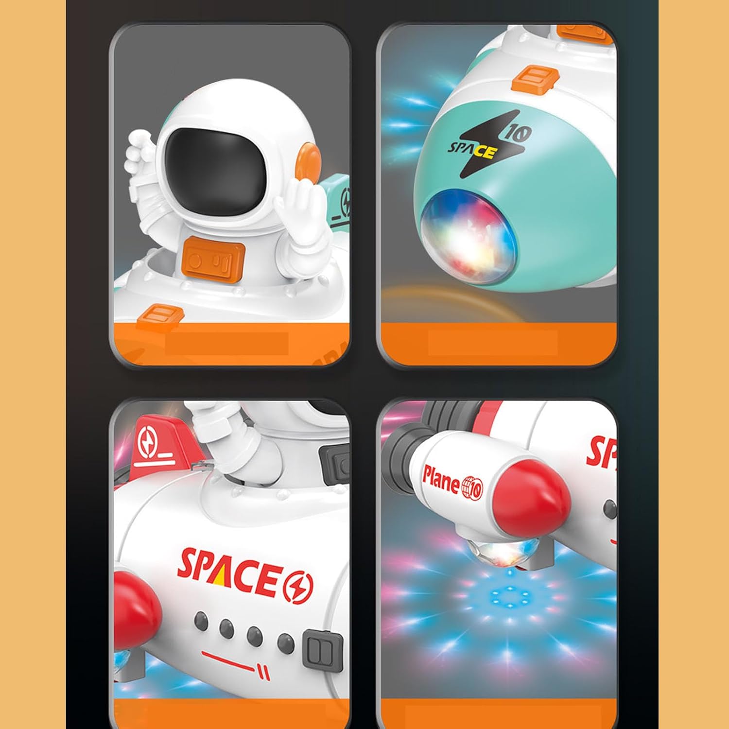 [IMMAGINAZIONE SCINTILLANTE]: la funzione di rotazione a 360 gradi del nostro giocattolo dello Space accende l'immaginazione dei bambini e incoraggia l'esplorazione del cosmo. [INTERAZIONE MIGLIORATA]: con una funzione di sollevamento per il movimento su e giù, il giocattolo dello Space promuove il gioco interattivo che attira l'attenzione dei bambini. [ESPERIENZA SENSORIALE]: goditi un gioco ricco di sensi con musica e luci colorate che creano un'affascinante atmosfera di viaggio spaziale per i bambini. [VERSATILITÀ DI MOVIMENTO]: le ruote omnidirezionali dello Space offrono movimenti versatili, aggiungendo un'entusiasmante sfida da giocare per i bambini. [ DI QUALITÀ]: realizzato in materiale ABS, il giocattolo dello Space garantisce sicurezza e durata, soddisfacendo rigorosi standard di qualità per il divertimento dei bambini.