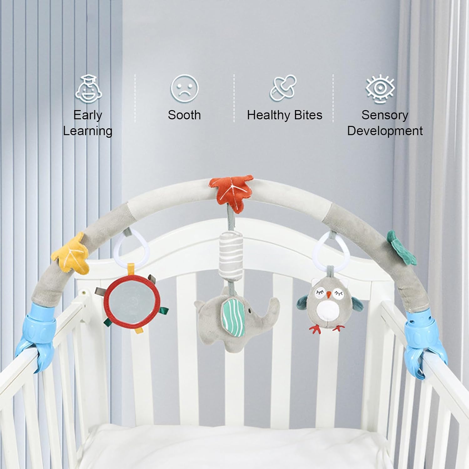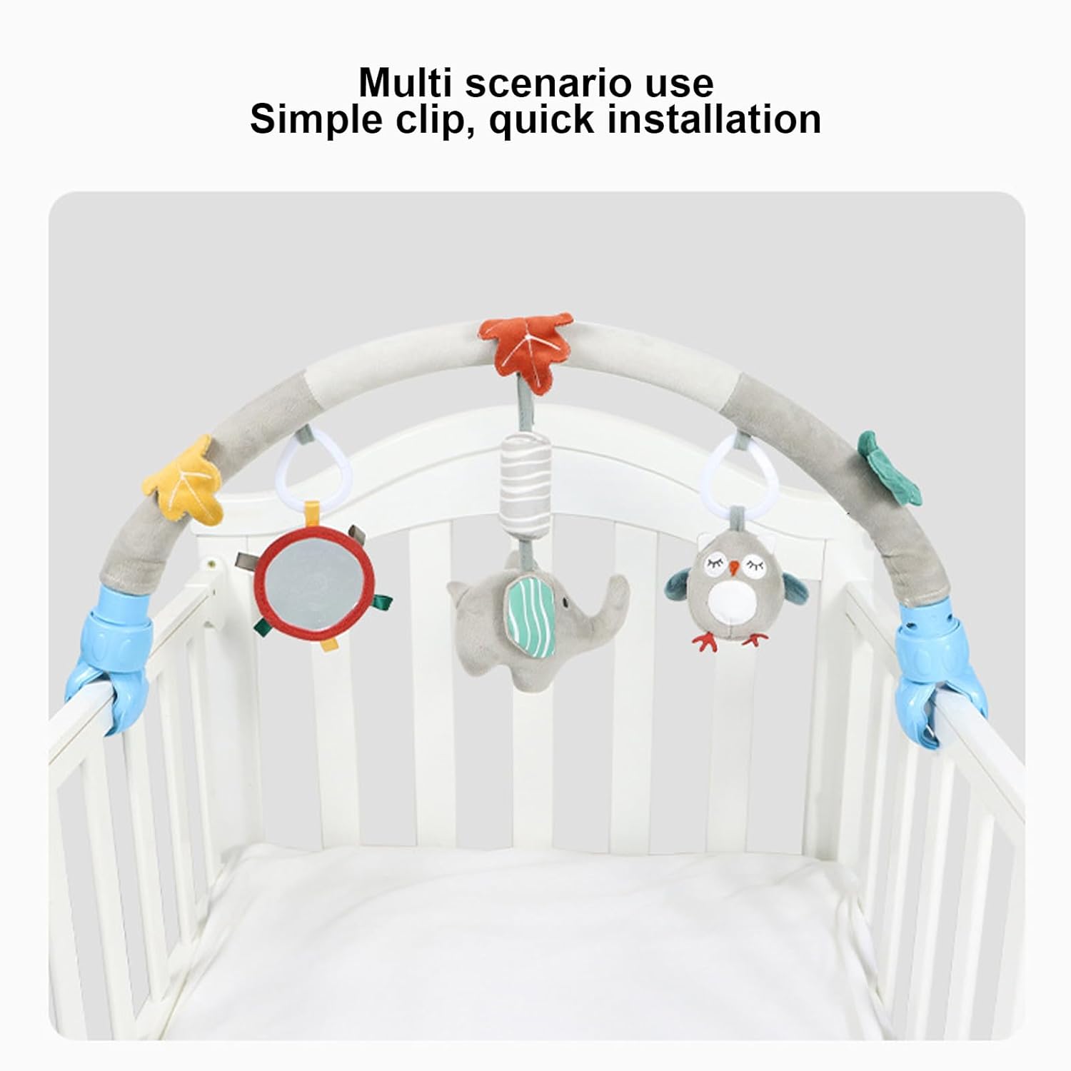 [MORBIDO E SICURO] Realizzato in materiale peluche ultra morbido per un'esperienza confortevole. [DESIGN ATTRAENTE] Il design unico e irresistibile catturerà l'attenzione del tuo bambino per ore. [COORDINAZIONE MANO-OCCHIO] Promuove lo sviluppo cognitivo e la stimolazione tattile con i giocattoli appesi. [FACILE DA FISSARE] Design pratico con morsetto/supporto per il fissaggio a culle, passeggini o seggiolini auto. [MONTAGGIO SICURO] Previeni cadute accidentali di animali di peluche con un morsetto/staffa di montaggio sicuro.