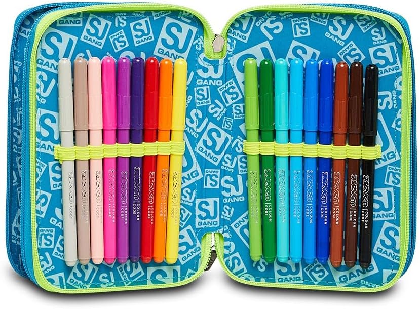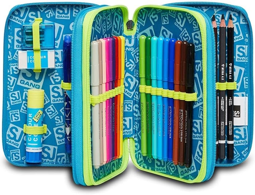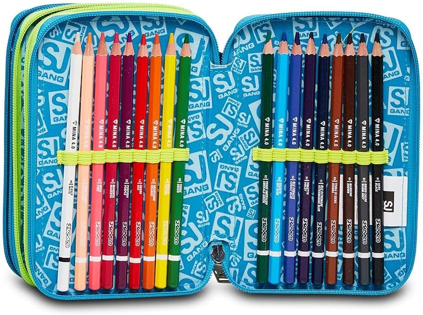 Ciao! Io sono la colorata custodia SJ Gang 3 zip. Dotato di 3 scomparti completi di tutti i materiali necessari per svolgere il lavoro scolastico, abbinami con uno zaino o un trolley SJ Gang