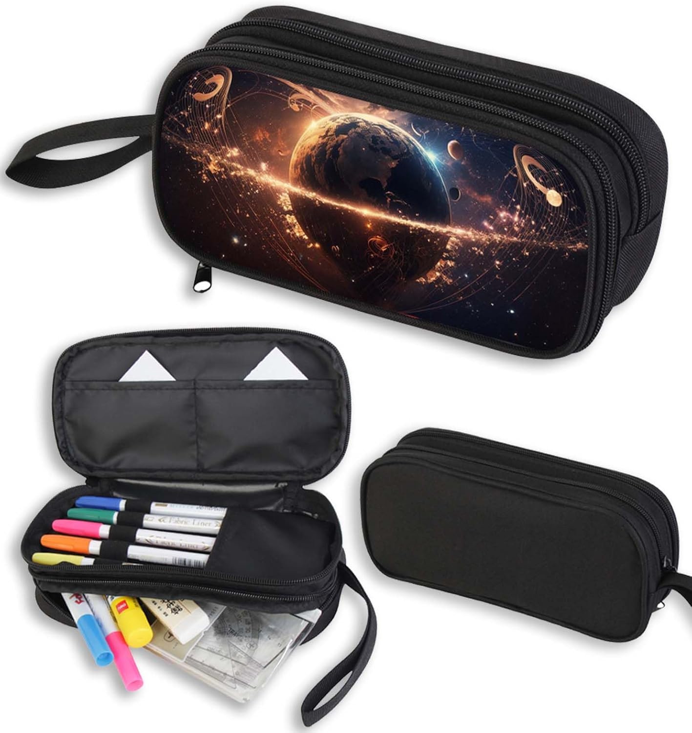Dimensioni: 12,5 x 20 x 7 cm Tasche: Triplo scomparto Tessuto: Poliestere Altre caratteristiche: CONTENUTO 45 PEZZI: 1 penna cancellabile blu, 1 penna sfera rossa, 18 pastelli a colori 4.0 esagonali, 18 pennarelli superlavabili punta 3.0, 1 matita grafite esagonale HB, 1 colla gialla azzurra, 1 gomma bianca con cartoncino stampato, 1 temperino barilotto 2 fori, 1 righello trasparente, 1 matita bicolor rosso/blu, 1 paio di forbici in metallo Perfetto per accompagnare le giornate scolastiche dei bambini, questo astuccio a triplo scomparto è la soluzione ideale per organizzare al meglio tutto l'occorrente. Con il suo design colorato, è pensato per bambini della Scuola elementare. Realizzato in resistente tessuto di poliestere, questo astuccio unisce praticità e qualità, perfetto da abbinare a qualsiasi zaino scolastico.