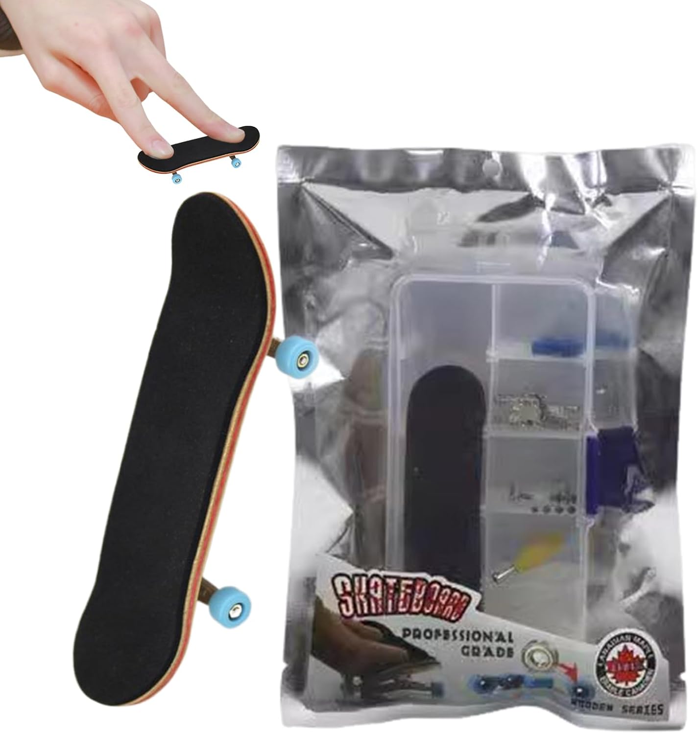 Potenzia la Coordinazione: I finger skateboard migliorano la concentrazione e la coordinazione occhio-mano con esercizi coinvolgenti che aumentano flessibilità e precisione nelle dita Esecuzione facile: La rotazione scorrevole e senza intoppi è resa possibile dai cuscinetti flessibili e dal di cuscinetti di precisione, permettendo di eseguire varie tecniche con finger skateboard con fluidità costante Robustezza superiore: Grazie all'acero naturale, noto per le sue proprietà eccellenti, assicura e stabilità senza pari, adatto a chi cerca un'attrezzatura resistente e rispettosa 'ambiente Controllo Stabile: I grip antiscivolo texture assicurano traiettorie precise e attrito ottimizzato per una risposta coerente in ogni manovra Maneggevolezza Assoluta: Design ergonomico studiato per un trasporto agevole, con dimensioni ridotte che si integrano in qualsiasi contenitore mantenendo il peso minimo senza sprecare spazio utile