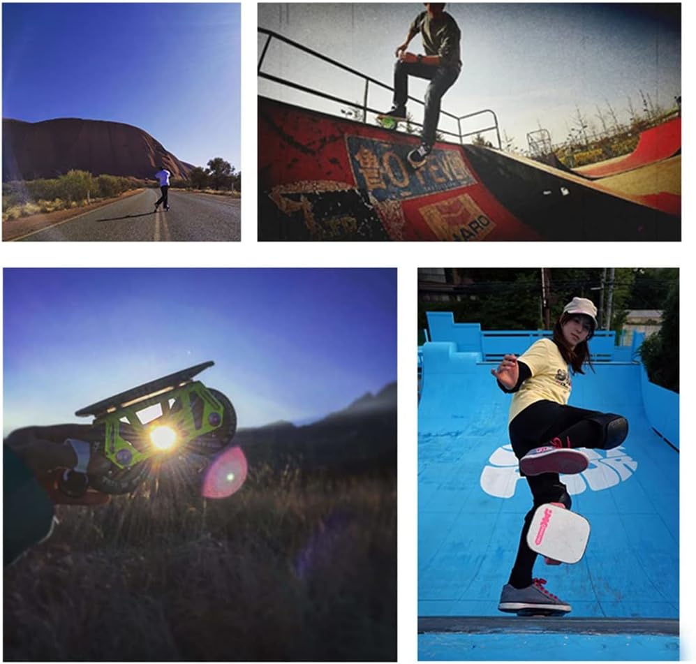 Materiale in alluminio: la scheda alla deriva utilizza pannelli in alluminio leggero per ridurre il peso. Il design robusto integrato raddoppia la struttura in acciaio per garantire un'elevata rigidità e resistenza della staffa. Skateboard senza bordo: in piedi su una tavola mobile, le braccia possono oscillare, la vita può essere piegata e le gambe possono scivolare, in modo da poter esercitare e perdere peso. Alta qualità: le ruote sono 72 mm (diametro) * 44 mm (larghezza), che sono elastiche e l'usura migliorano la stabilità. I cuscinetti ad alta velocità possono far funzionare la scheda di deriva veloce e senza intoppi. Semplice: ogni piede si muove in modo indipendente, permettendoti la libertà di girare e accelerare in modi insoliti. Porta più libertà. Regalo per gli amici a cui piace skateboard in linea. Telaio in acciaio integrato: staffa monopezzo ad alte prestazioni, capacità super cuscinetto. Ed è stato aggiunto un foglio tampone sulla connessione tra la staffa e la superficie della piastra, che ha un buon effetto tampone.