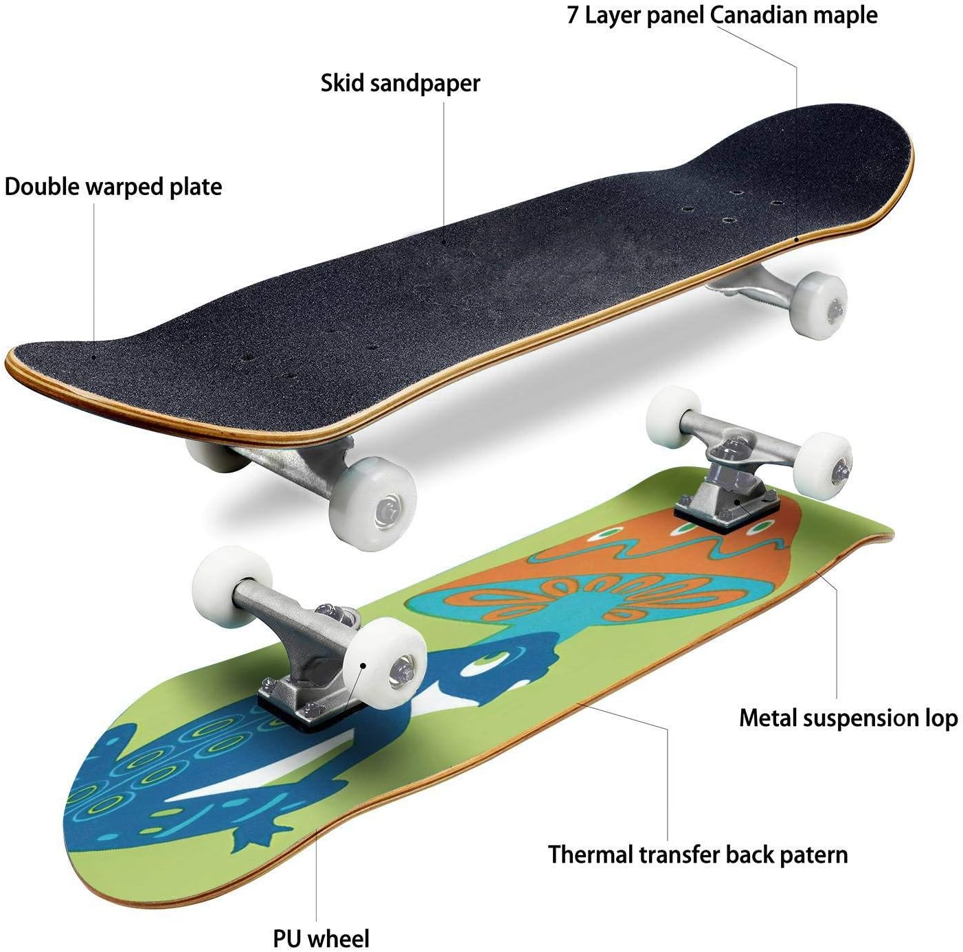 Dimensioni: 31" x 8" Il ponte in acero è un perfetto equilibrio tra resistenza e peso. La carta vetrata ad alta densità, la superficie impermeabile antiscivolo e la ruota in PU con cuscinetti a sfera di precisione ad alta velocità lo rendono resistente e durevole. Le ruote sono adatte per pendolari, skate park, rampe, piscine e altre superfici lisce o anche ruvide. Nessun assemblaggio richiesto, adatto a principianti e professionisti. La nostra tecnologia di stampa avanzata ti offre modelli vivaci e ad alta risoluzione. (*Le immagini di esempio sono solo di riferimento.) Il regalo perfetto per gli adolescenti. Gli skateboard creativi e alla moda sono popolari tra ragazzi e ragazze. I colori delle ruote sono casuali. Se avete domande, non esitate a contattarci.