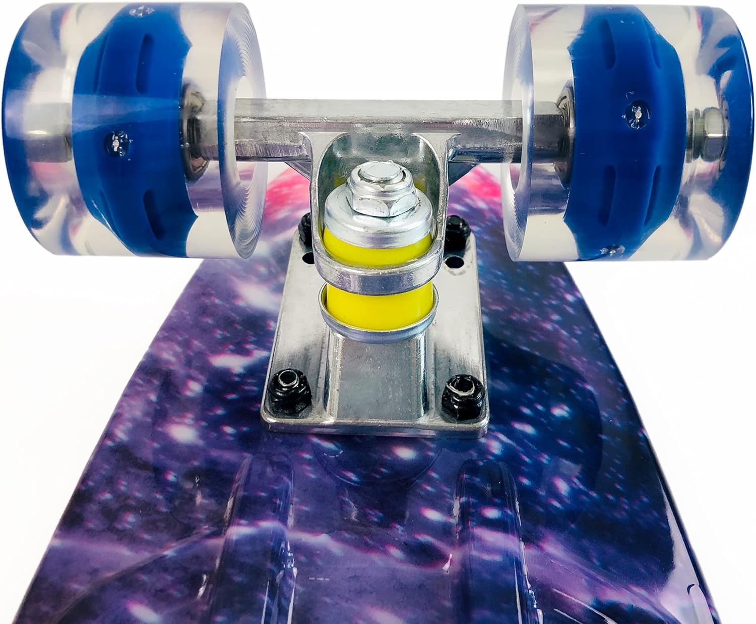[Dimensioni] Lunghezza 55 cm x Altezza 9 cm x Larghezza 14 cm È una dimensione squisita e compatta e può essere facilmente riposta in una borsa e portata ovunque. Lo skateboard mini cruiser è una versione ristampata del vecchio skateboard, che è stato modificato con l'ultima tecnologia. [Cuscinetti ABEC7 adottati] Il cuscinetto è realizzato in ABEC7 ed è progettato senza spazi vuoti. Ha la massima precisione nell'area pratica come ABEC3 e ABEC5. Pertanto le prestazioni sono migliorate e lo slittamento e il comfort sono i migliori. [Deck di alta qualità] Materiale: plastica x lega Non è solo compatto ma anche resistente. La deformazione, la flessibilità e le condizioni del ponte sono così buone che non si romperanno nemmeno se utilizzate da un utente che pesa fino a 150 kg. [Esercizio sano] Questo skateboard ben costruito è sicuro sia per i principianti che per i ciclisti esperti e adatto a tutti i livelli. Uno skateboard con un focus sullo scorrimento. [DURABLE WHEEL] Tutte e quattro le ruote sono realizzate con pneumatici lucidi realizzati in materiale PU ad alta resistenza e hanno una durata eccellente. È ampio e morbido e può essere utilizzato per diversi motivi.