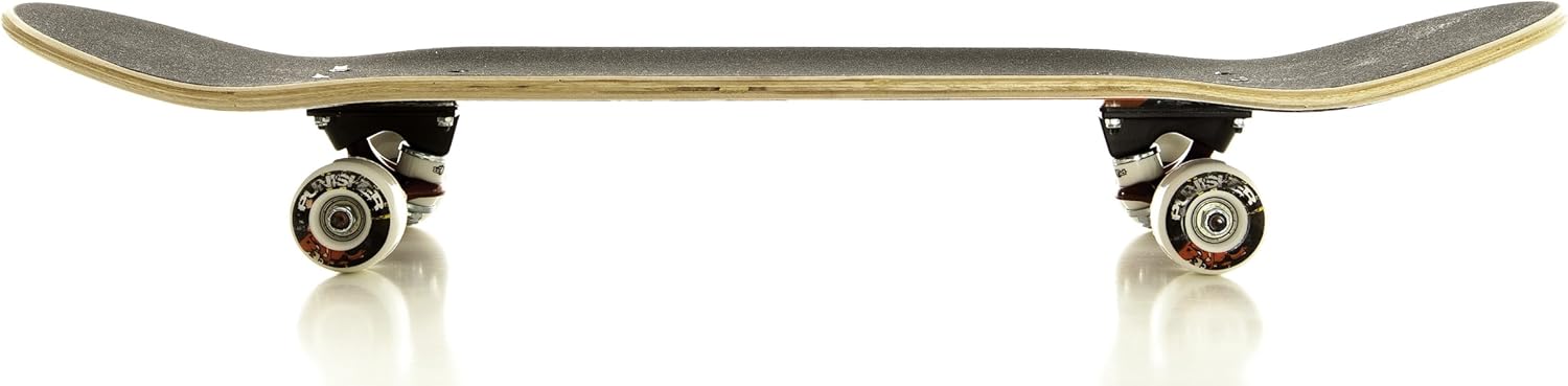 Tavola in acero canadese da 31" x 7,5" con doppio calcio concavo ABEC 5 cuscinetti, nuova lega leggera Segaull da 5". Ruote in PU avorio da 54 x 36 mm con grafica