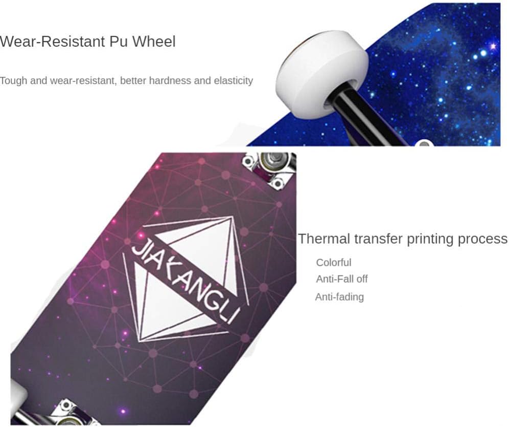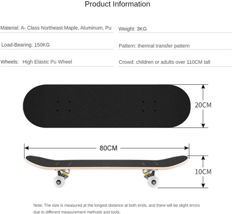 [Design a pattern di trasferimento caldo di trasferimento]: design personalizzato per soddisfare le diverse esigenze estetiche delle persone. Attraente stile grafico, tra cui giovani, vitalità, nuova onda, retrò, classico, fumetti, ecc. [Skateboard / mazzo robusto] Completa scheda / mazzo / skateboard, piastra lunga in acero, acero canadese ad alta densità a 8 strati, skateboard standard da 31 pollici completamente assemblato facile da trasportare. [Durevole, sicuro, impermeabile, non slittamento, facile controllo] robusto, sicuro, impatto, duro e fratturato. Levigatore di diamanti anti-slip ad alta intensità di particelle, superficie di sabbia non slittata, resistente all'usura e resistente. Adatto a tutti i pavimenti lucidi e accidentati. [Adatto a tutti i bambini] Adatto a bambini, ragazzi, ragazze, adolescenti, adulti, principianti e skateboarder professionisti, pattini neri adatti per qualsiasi appassionato di pattinaggio di livello, è ideale anche per ragazzi e ragazze. [Facile da usare e controllo] Design di ammortizzatori PU ad alta elastica, mitigare lo shock, bilanciamento controllato efficacemente, resettare una resistenza ad alta usura, impugnatura, cuscinetto silenzioso ad alta velocità, usura ad alta resistenza, rumore, rumore piccolo, piccolo rumore, se la rotazione è stabile, si prega di essere certi di intrattenere.