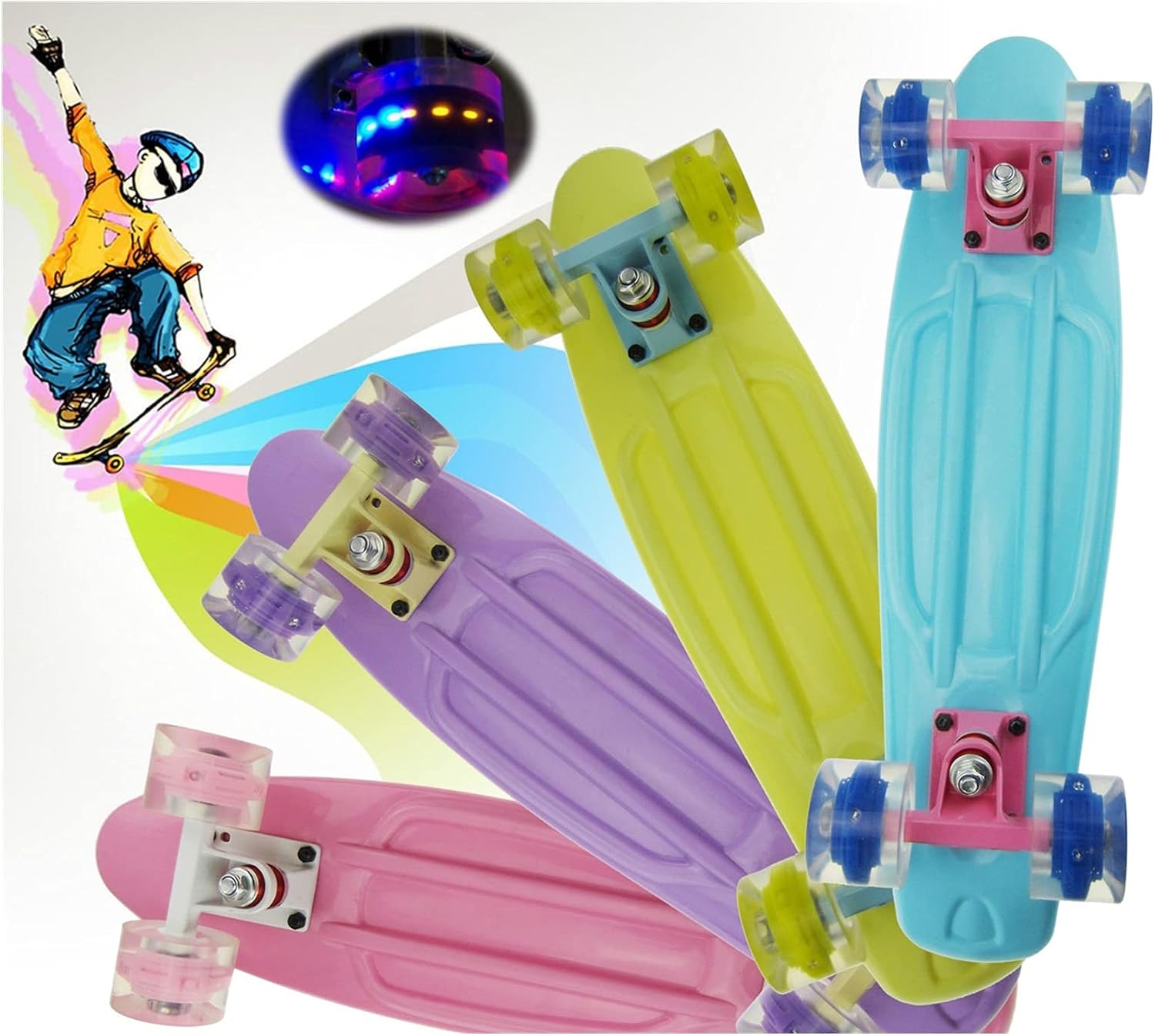 [Facile da guidare] Skateboard completo, con ruote PU e mazzo antiscivolo Non può solo fornire maggiore stabilità e sicurezza per gli utenti ma anche tenere entrambi i piedi su di esso, che possono adatti alle persone. [Materiale bastone] PP Rendi il ponte molto durevole, le ruote PU super soft-morbide tagliano lo smorzamento Quando si guida, il camion in lega fornisce una struttura più costante per skateboard, i cuscinetti fanno girare le ruote più senza intoppi [Ruote PU] Fornisce più liscia e veloce Glide. [Facile da fermare] Quando vuoi fermare, metti uno dei tuoi piedi sul terreno per fermarlo.Oppure puoi appoggiare il corpo alla direzione inversa per rallentare la velocità, quindi fermare il skateboard.