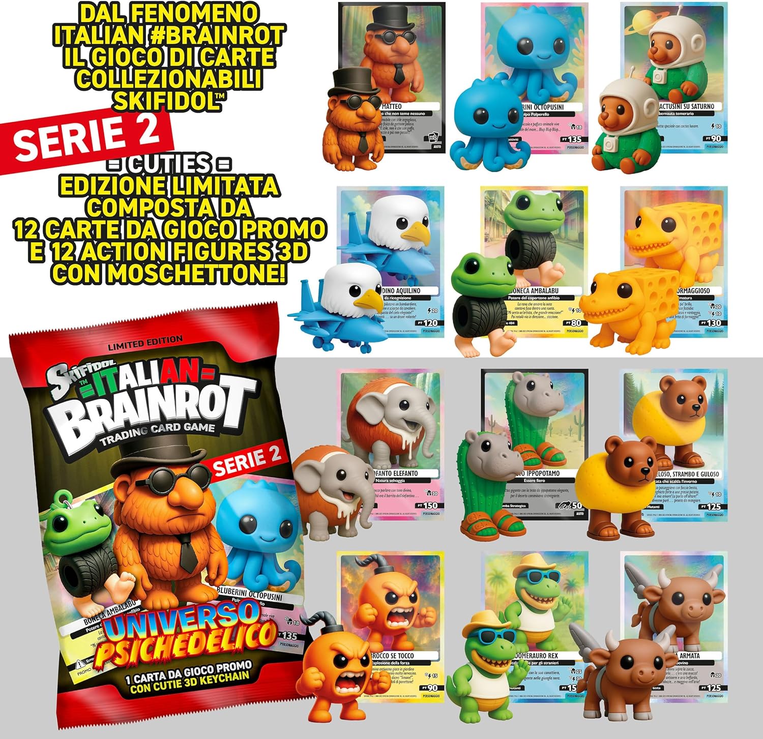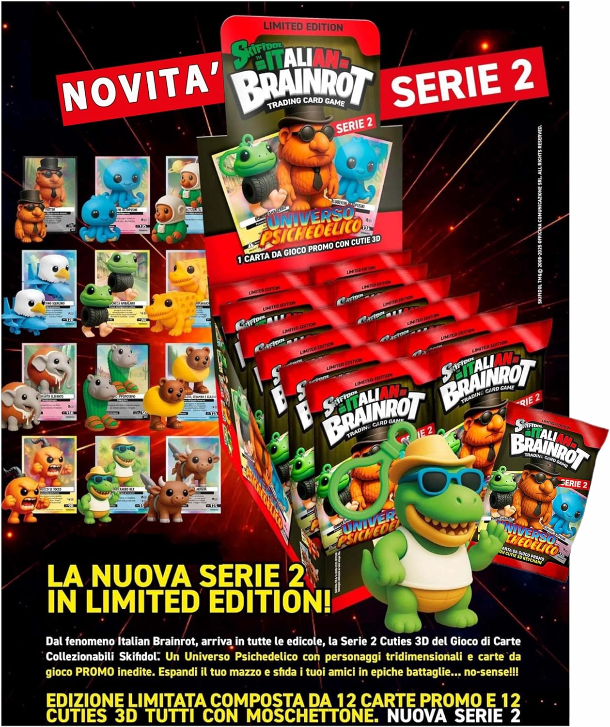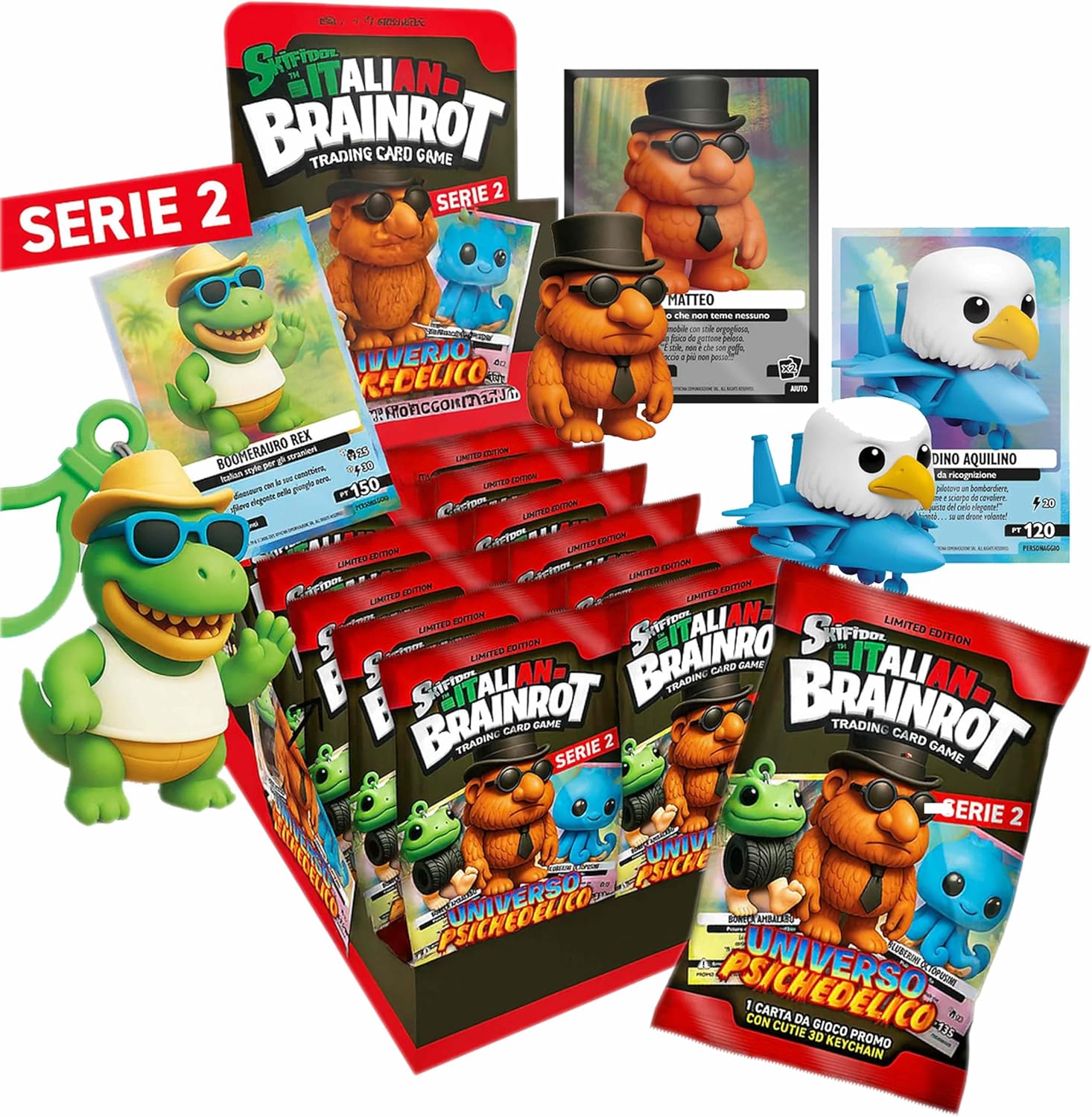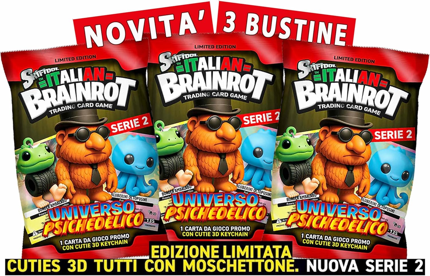 CONTENUTO: Set di 3 bustine della Serie 2 Italian Brainrot, ogni bustina contiene carte olografiche collezionabili e personaggi 3D COLLEZIONE: Parte della serie 'Universo Psichedelico', con personaggi unici e colorati come la rana verde, il personaggio arancione e la creatura blu CASUALITÀ: Ogni bustina contiene una selezione casuale di carte e personaggi 3D, rendendo ogni apertura un'esperienza unica SERIE LIMITATA: Appartiene alla Seconda Serie della collezione, una novità imperdibile per i collezionisti FORMATO: Bustine sigillate singolarmente con grafica accattivante e design professionale della serie Italian Brainrot