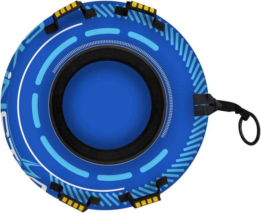 Dimensioni da gonfiato: diametro Ø 75 cm, carico massimo ca. 100 kg, 1,9 kg estremamente leggero. 4 manubri morbidi in schiuma, con protezione della caviglia in neoprene. 100% di alta qualità e lavorazione dal leader di mercato dei tubi divertenti. Con base scorrevole integrata nel telone, quasi indistruttibile! Adatto per uso commerciale su tubi e sistemi di sollevamento! Consegna: tubo da neve Ø 75 cm, estrattore per valvola e fune da tirare