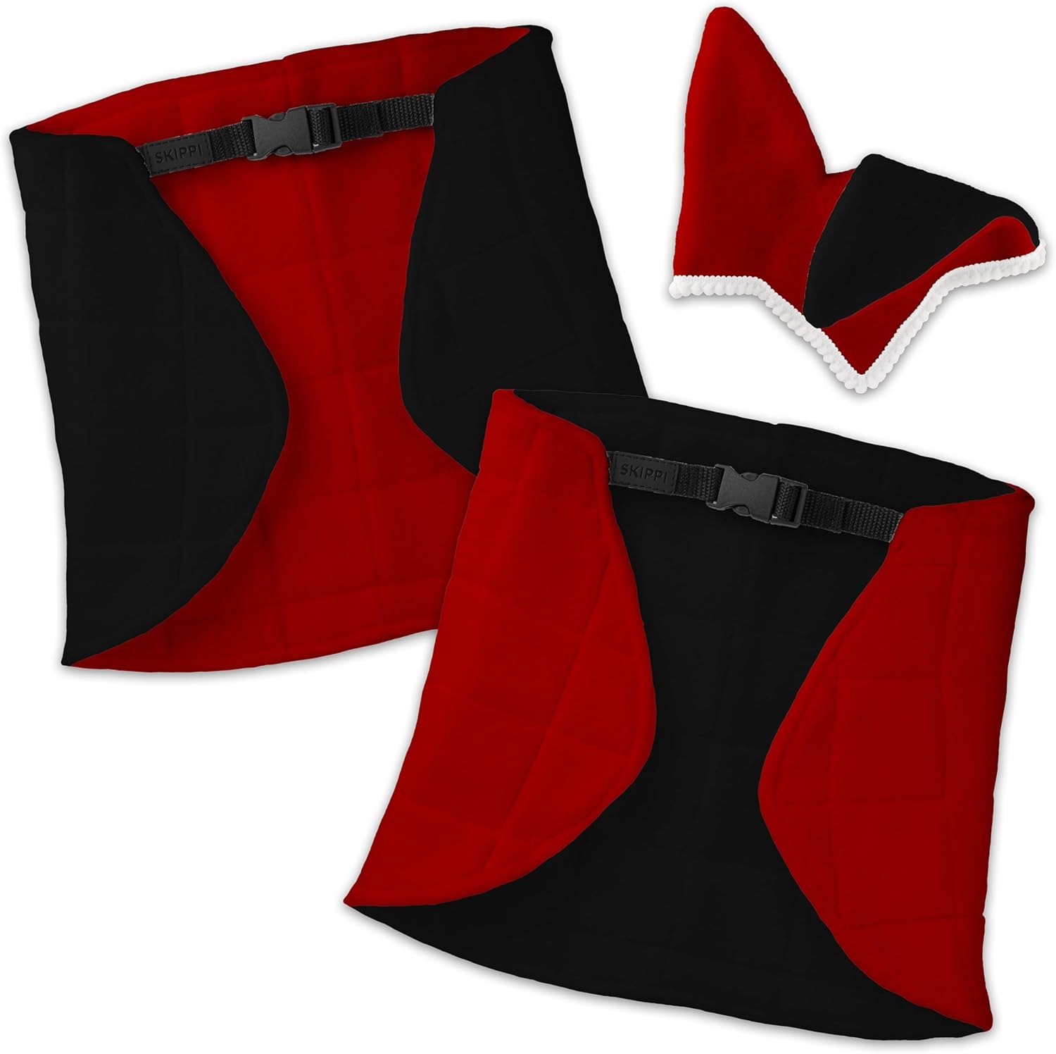 Cuffietta e coperta per hobby horse. Ogni lato della coperta ha un colore diverso (rosso e nero), il che consente di cambiare l'aspetto del cavallo a seconda dell'umore o dell'occasione. Un accessorio elegante e carino, ma anche un elemento pratico dell'equipaggiamento dell'hobby horse. Permette di personalizzare l'aspetto del cavallo, aggiungendo un carattere unico. Produzione artigianale in Europa; ogni prodotto Skippi è realizzato a mano da artigiani esperti che curano ogni minimo dettaglio. Gli accessori per hobby horse sono un regalo che sicuramente porterà gioia e aggiungerà più magia ai giochi con l'hobby horse. Il set si adatta alla maggior parte dei cavalli a bastone nelle dimensioni A3 e A4. Dimensioni della coperta antimosche: 47 x 27 cm. Chiusura regolabile al collo. Cuffia: 17 x 15 cm. Materiale: pile (100% poliestere). Lavabile a 30 gradi.