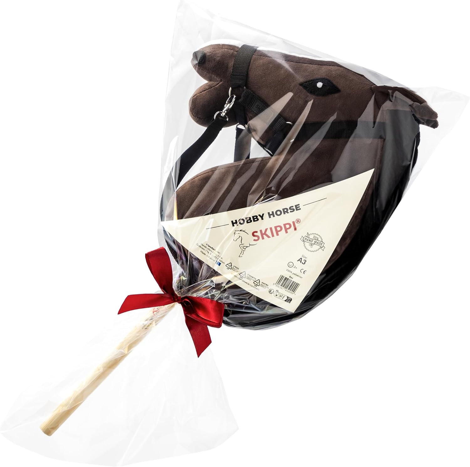 Un grande cavallo hobby horse in formato A3. Un meraviglioso giocattolo che invita il bambino a giocare attivamente con gli amici. Prodotto artigianale. Ogni cavallino Skippi viene fornito con una cavezza nera e redini. Grazie a questo, la piccola appassionata di cavalli può iniziare a giocare immediatamente. L'hobby horsing sta conquistando i cuori di un numero sempre maggiore di ragazze e adolescenti. Un cavallino su bastone ben fatto incanterà ogni bambino che ama i cavalli. Un regalo fantastico per le appassionate di cavalli - cavalcare e saltare su un cavallino hobby horse è un ottimo complemento all'allenamento su un vero cavallo. L'hobby horse Skippi ha una lunghezza del bastone perfettamente adattata. Il cavallo è comodo da guidare e il bastoncino non intralcia durante il salto degli ostacoli.