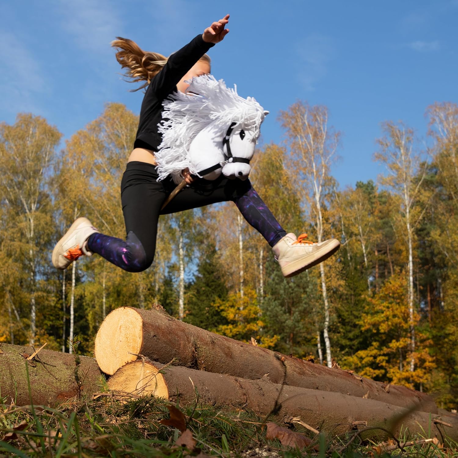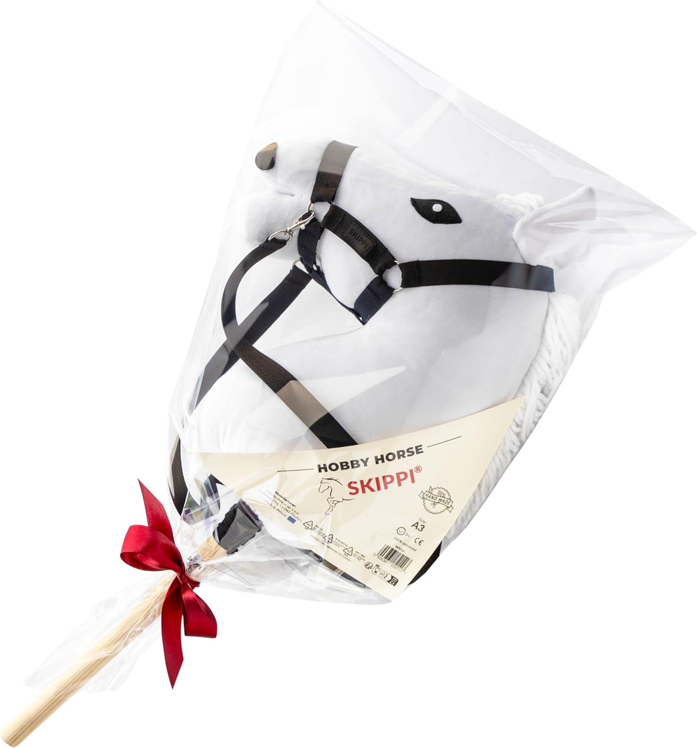 Un grande cavallo hobby horse in formato A3. Un meraviglioso giocattolo che invita il bambino a giocare attivamente con gli amici. Prodotto artigianale. Ogni cavallino Skippi viene fornito con una cavezza nera e redini. Grazie a questo, la piccola appassionata di cavalli può iniziare a giocare immediatamente. L'hobby horsing sta conquistando i cuori di un numero sempre maggiore di ragazze e adolescenti. Un cavallino su bastone ben fatto incanterà ogni bambino che ama i cavalli. Un regalo fantastico per le appassionate di cavalli - cavalcare e saltare su un cavallino hobby horse è un ottimo complemento all'allenamento su un vero cavallo. L'hobby horse Skippi ha una lunghezza del bastone perfettamente adattata. Il cavallo è comodo da guidare e il bastoncino non intralcia durante il salto degli ostacoli.