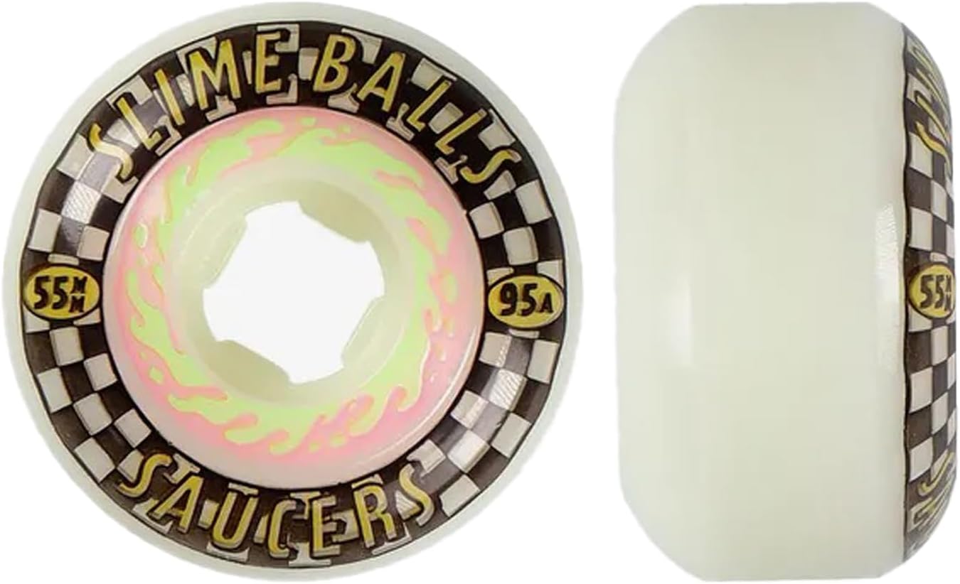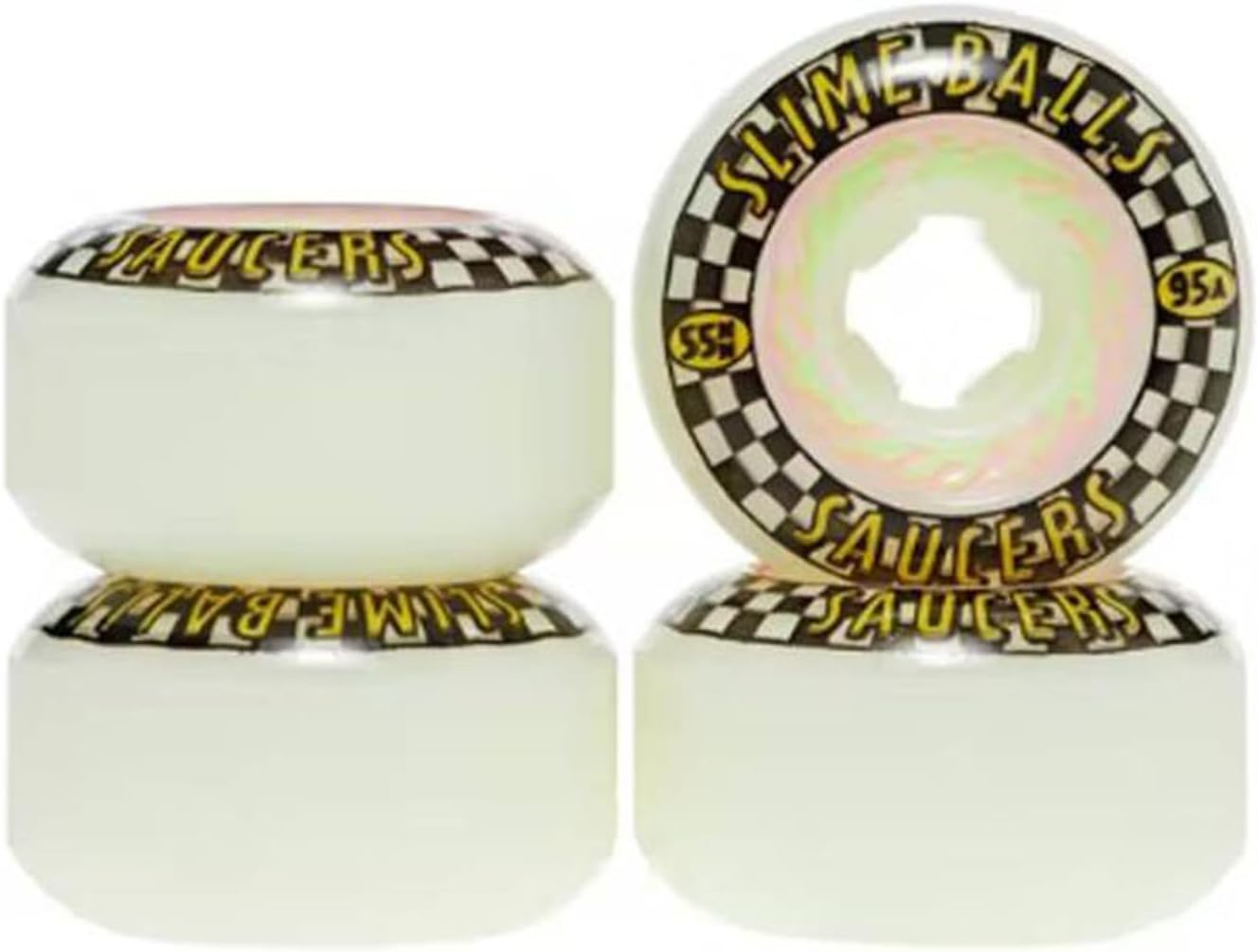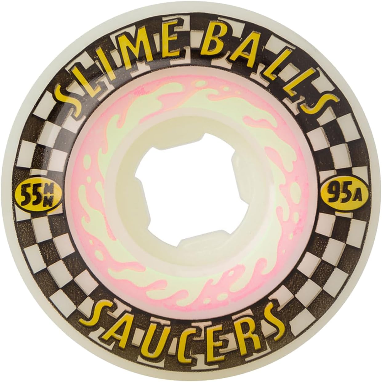 Slimeballs tutte le nuove ruote Saucers dispongono di un bordo arrotondato per una facile transizione "on e off" coping e una superficie di guida stretta per un facile scorrimento sul nuovo, alte prestazioni all terrain 95a uretano.