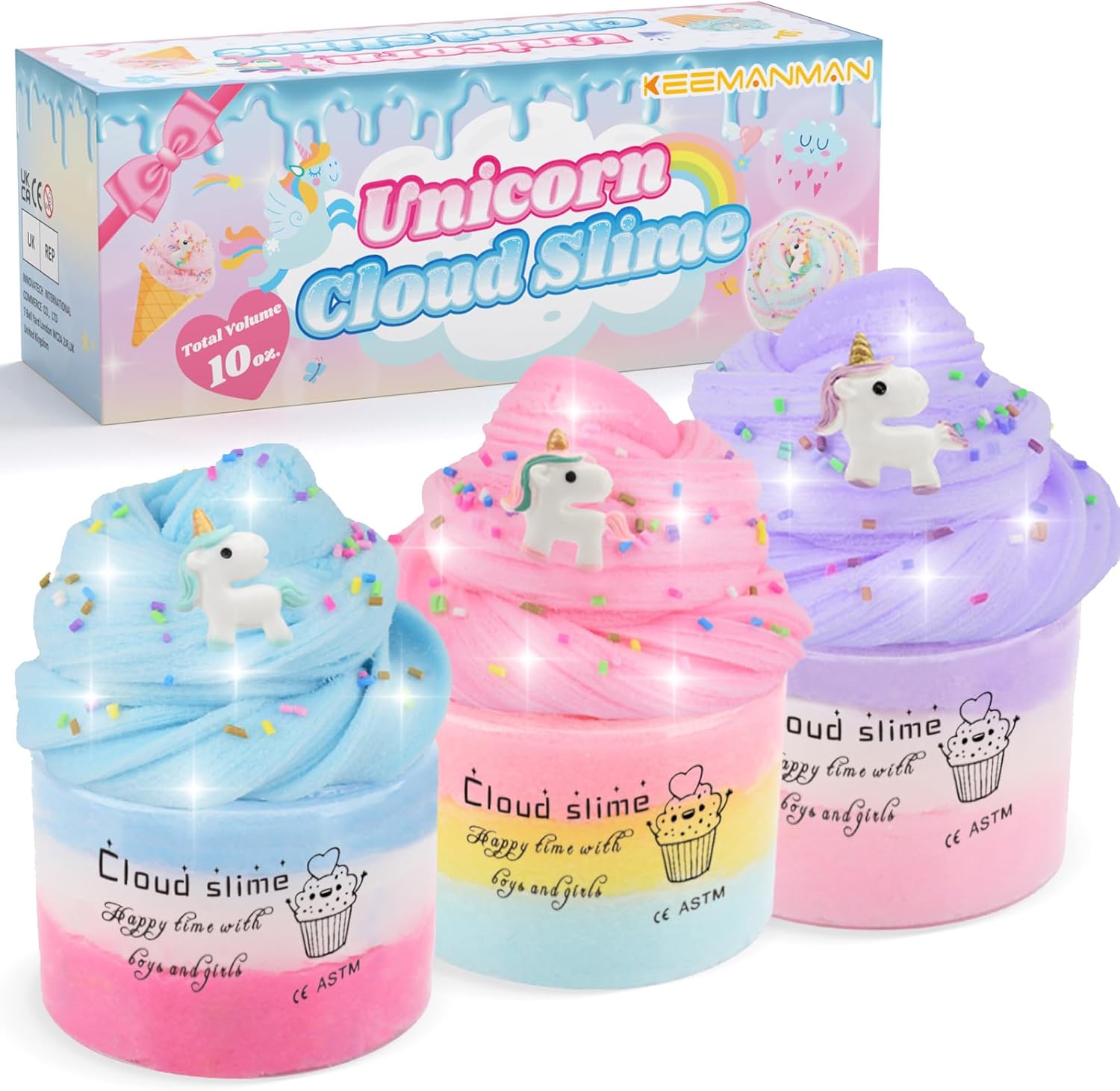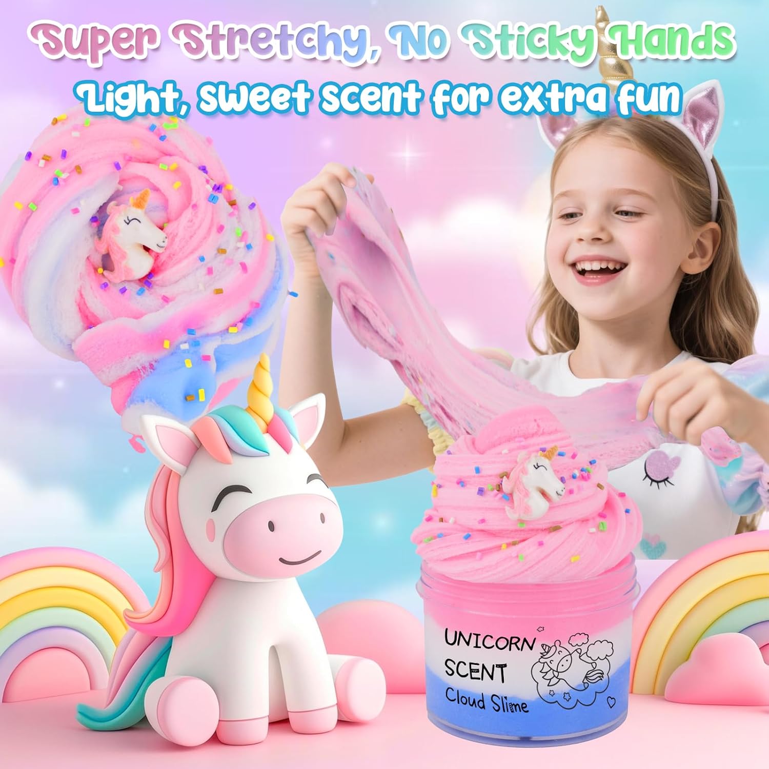 KIT MAGICO SLIME NUVOLA UNICORNO: Questo slime nuvola a tema unicorno presenta un incantevole design a tre strati che combina delicate tonalità di blu, bianco e rosa per un'esperienza visiva e tattile magica. Completo di un charm unicorno abbinato e sprinkles colorati, puoi stirarlo, girarlo e modellarlo creando la tua personale creazione magica unicorno—divertimento immaginativo senza fine ti aspetta! REGALI DI COMPLEANNO COOL PER BAMBINI E BAMBINE: Questo set di slime viene presentato in una deliziosa confezione regalo a tema unicorno, rendendolo il regalo perfetto per i bambini! Ideale per compleanni, festività o qualsiasi occasione speciale, il grazioso packaging aggiunge magia ed emozione, garantendo un regalo amato e memorabile. COSE CARINE & SLIME PER BAMBINI: Il nostro slime nuvola premium a tema unicorno è incredibilmente morbido, liscio e facilmente modellabile—perfetto per spremere, torcere, allungare e creare disegni fantasiosi! A differenza degli slime tradizionali, è meno appiccicoso, durevole e non si secca facilmente se conservato correttamente. Goditi un'esperienza pulita e senza disordine con una consistenza eccellente! SICURO E ADATTO AI BAMBINI: Realizzato con materiali di alta qualità, ipoallergenici e atossici, questo slime nuvola unicorno è delicato sulla pelle e non macchia. Completamente sicuro per bambini e adulti, garantisce un'esperienza di gioco divertente e priva di preoccupazioni. Tuttavia, i bambini devono sempre essere supervisionati durante il gioco. Non adatto ai bambini sotto i 3 anni e non deve essere ingerito. CONSIGLI DI MANUTENZIONE FACILI PER DIVERTIMENTO DURATURO: Se il tuo slime unicorno diventa rigido per il freddo o non è abbastanza elastico, aggiungi semplicemente un po' di lozione, gel igienizzante per mani o gel per capelli per ripristinare la sua morbidezza. Puoi anche metterlo nel microonde per alcuni secondi per una soluzione rapida! Per risultati migliori, conservalo nel barattolo incluso o in un contenitore ermetico per mantenerlo fresco e soffice. Se diventa troppo appiccicoso, aggiungi un pizzico di bicarbonato per ripristinare la consistenza ideale!
