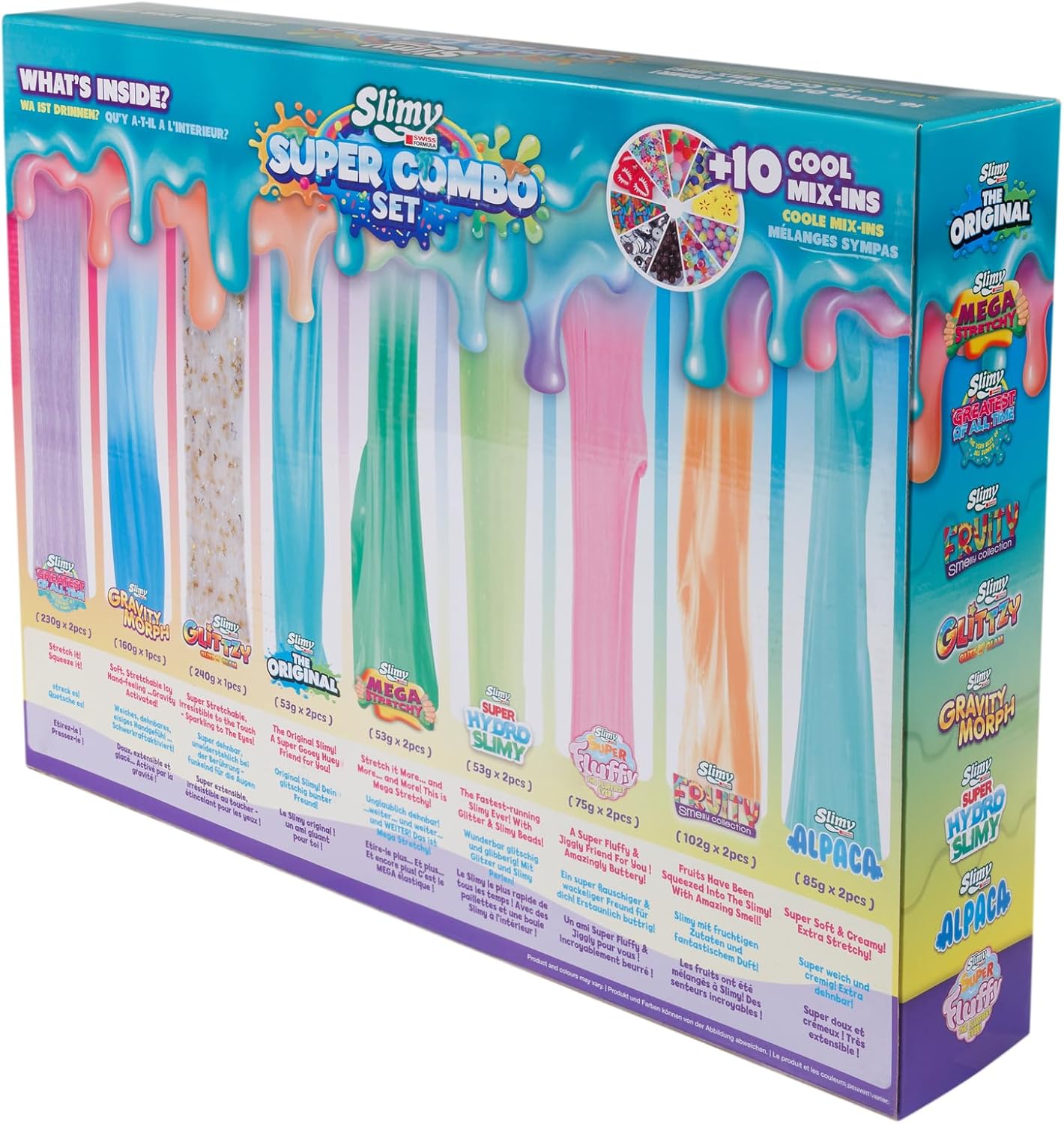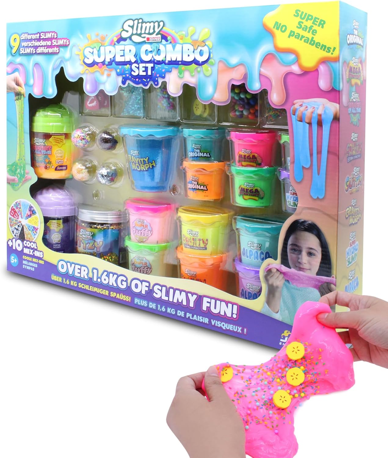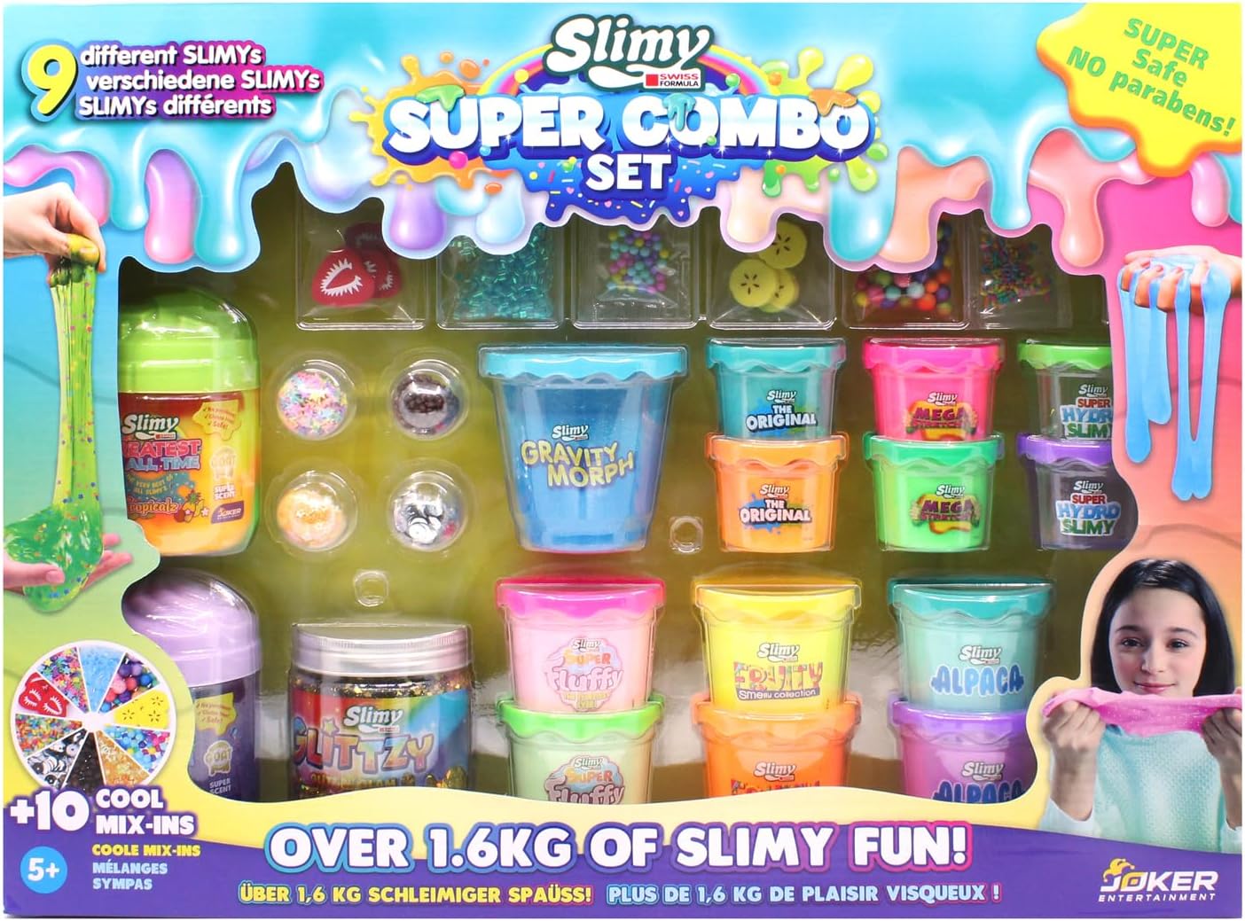 ULTIMATIVO: il divertimento originale Slimy Ultimate con 9 diversi livelli di gioco e plastilina! Oltre 1,6 kg di diverse masse di gioco e mix-in! I più popolari SLIMYs nella confezione regalo limitata per tutti i fan originali Slimy Versatile: una collezione delle nostre migliori masse da gioco SLIMY e 10 fantastici mix in per il massimo divertimento di gioco Slimy Accuratamente selezionato nella bella confezione regalo per bambini dai 5 anni in su ORIGINALE: naturalmente sicuro secondo la formula svizzera! Le masse originali SLIMY sono realizzate senza parabeni o altri conservanti aggressivi e al 100% senza glutine. Tutte le materie prime essenziali provengono dalla Svizzera per la migliore qualità. Sicuro: dermatologicamente testato. Le masse da gioco originali SLIMY soddisfano i più severi standard di qualità e sicurezza Per garantire la massima tollerabilità cutanea, i prodotti originali SLIMY sono dermatologicamente testati da istituti indipendenti AUTORE: Educativamente prezioso! Toccare, impastare e tagliare le masse originali SLIMY promuovono lo sviluppo di capacità sensoriali, capacità motorie, percezione, immaginazione e creatività! Formare e far fluire le masse di gioco stimolano l'immaginazione!