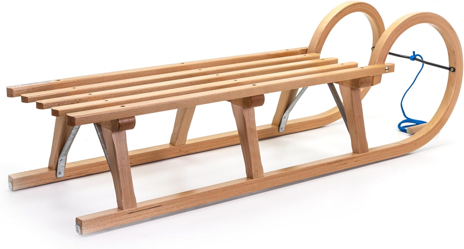 Slitta per il tempo libero per bambini e famiglie Lunghezza del sistema: 120 cm Pattini in multistrato di faggio / listelli in legno duro di faggio laccato Certificazioni: FSC 100%
