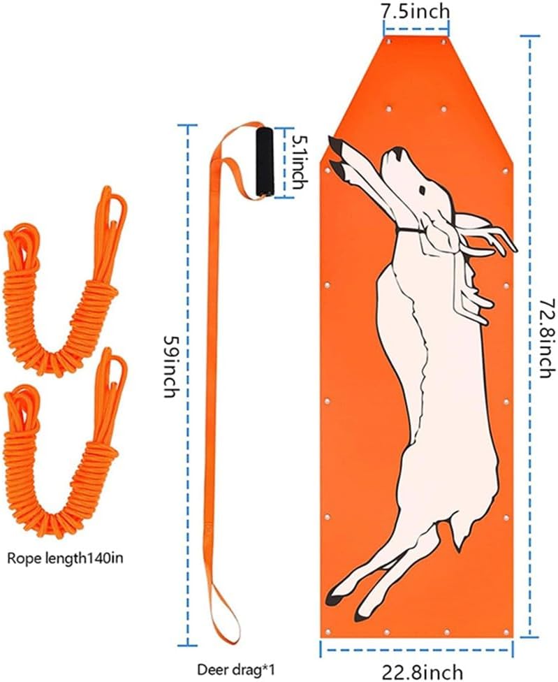 Soluzione completa di traino: il set di traino per cervi viene fornito con tutto il necessario un panno di traino e due corde insieme a una corda da traino da 355,6 cm per la massima efficienza. Costruito per durare: realizzata in polietilene resistente, questa slitta supporta carichi fino a 226,8 kg ed è adatta per l'uso su diversi terreni come neve e sporco. Design facile da usare: il carico e lo scarico sono semplici con la nostra slitta progettata con cura. Inoltre, la sua facile pulizia consente di risparmiare tempo dopo ogni utilizzo. [Strumento multifunzionale] Non solo per la caccia ai cervi; questa slitta è perfetta per trasportare legna da ardere o attrezzatura da campeggio, rendendolo un elemento essenziale per qualsiasi appassionato di attività all'aperto.