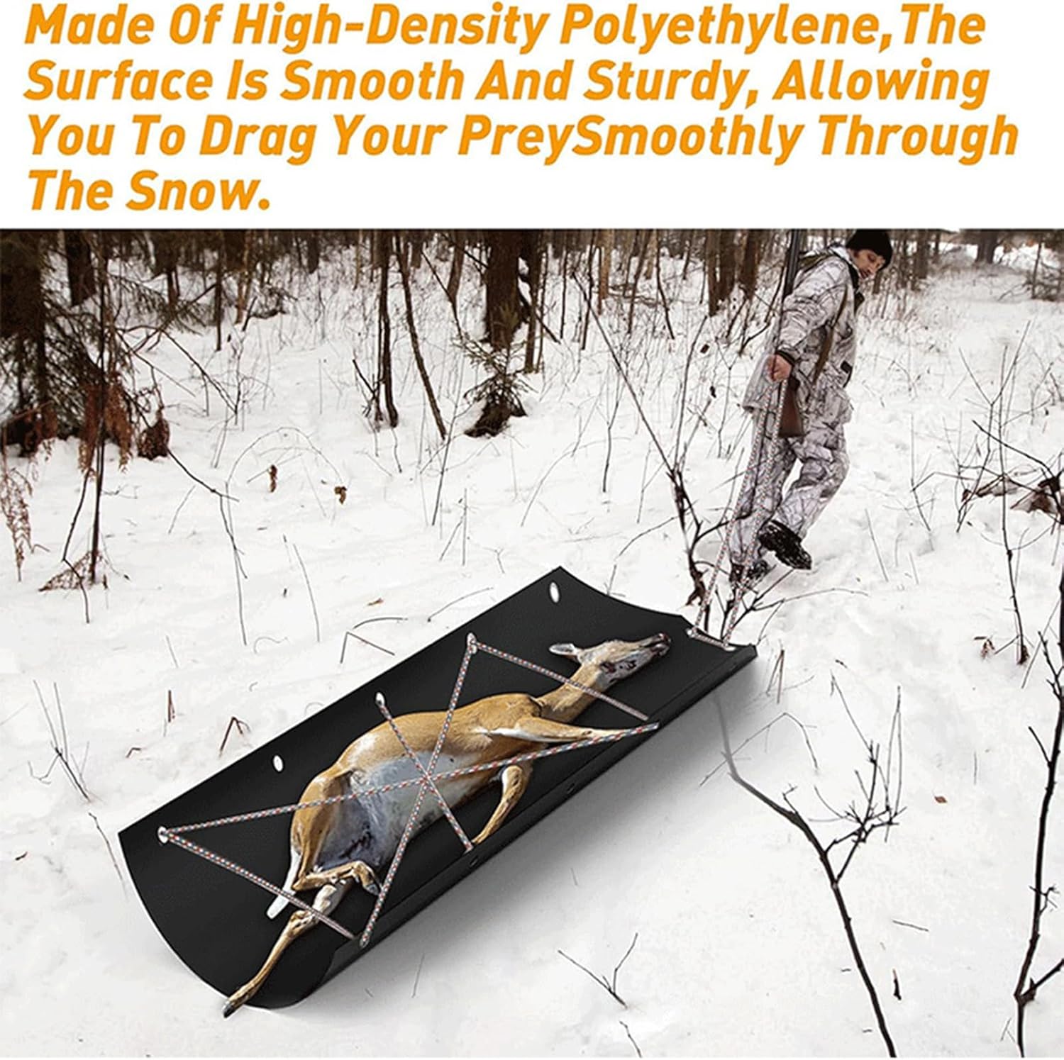 Durata ineguagliabile: questo led da drag per cervi è realizzato in polietilene ad alta densità resistente all'usura e durevole e offre un'elevata capacità di carico per qualsiasi terreno accidentato. Muoviti senza sforzo: il Deer Drag Sled scorre uniformemente su qualsiasi terreno e ti rende facile spostare la tua selvaggina da caccia attraverso la neve o le montagne aspre con il minimo sforzo. Pratico da pulire: con il design intuitivo del Deer Drag Sled, trasportare il tuo selvaggio è un gioco da ragazzi. Il suo aspetto elegante e liscio scivola facilmente su qualsiasi terreno e assicura che non si impacchi e si spezzi. Inoltre, è facile da pulire semplicemente pulendo o spruzzando con un tubo. Slitta multifunzionale: con questa robusta slitta per cervi puoi trasportare facilmente selvaggina, legna da ardere o altri oggetti pesanti. La versatile slitta da lavoro è adatta a qualsiasi terreno e garantisce un trasporto senza sforzo. Aggiorna il tuo gioco di trasporto all'aperto oggi! Ampia gamma di applicazioni: con la slitta da traino multiuso per cervi è possibile tirare alci, cervi e altri animali selvatici in modo efficiente durante la pesca sul ghiaccio o la caccia. Ideale per trasportare legna da ardere e altre attrezzature all'aperto.