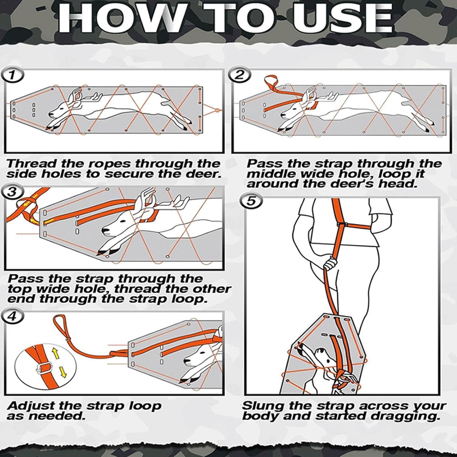 Risparmio di tempo: la robusta slitta per cervi è dotata di una corda di trascinamento larga 4 m e due corde lunghe 5 m per un trascinamento senza soluzione di continuità, anche in diagonale, rendendo le tue battute di caccia più facili ed efficienti Non facile da rompere: la slitta per cervi vanta una durata eccezionale, realizzata in PVC composito spesso da 1,2 mm. Questa slitta di alta qualità offre un'eccellente stabilità e può navigare su vari terreni come erba, fango, sabbia, neve e ghiaccio con facilità. Caratterizzato da un design arancione brillante, it e Trascinamento efficiente: con 6 fori per corda più larghi sulla parte superiore, questa slitta è progettata per un facile utilizzo, un carico e uno scarico rapidi e può trascinare senza sforzo l'attrezzatura attraverso vari terreni. Inoltre viene fornito con una corda di trazione abbinata, che lo rende la soluzione perfetta per il trasporto di gioco Facilità d'uso: in grado di sostenere fino a 226,8 kg, questa slitta per cervi misura 184,9 x 57,9 cm, rendendo facile gestire la maggior parte dei trasporti di gioco. Con spazio sufficiente per trasportare comodamente il tuo oggetto, è una soluzione ideale per i cacciatori Design multiuso: progettato con multi-funzione, che garantisce un facile trasporto e stoccaggio per oggetti come legna da ardere e attrezzi da caccia, rendendolo indispensabile per gli appassionati di attività all'aperto