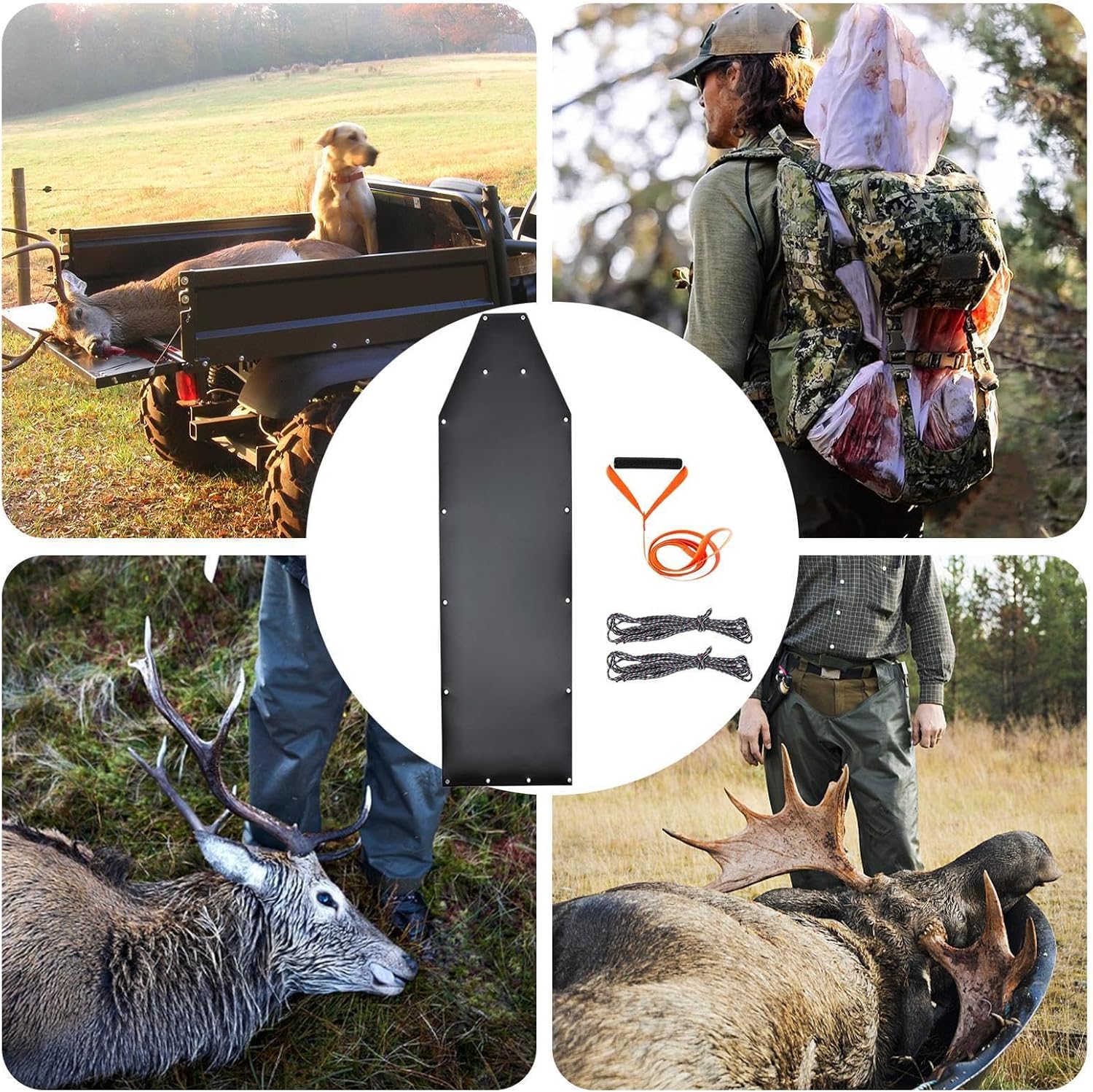 Alta resistenza: grazie al design robusto rinforzato e alla corda in nylon, la nostra slitta per cervi garantisce la massima resistenza e stabilità. Il robusto materiale composito in PVC spesso 1,2 mm garantisce che anche i cervi più grandi possano essere facilmente trasportati senza problemi. Trasporto senza sforzo: progettato con una struttura robusta per garantire una caccia più fluida, questa slitta per cervi trasporta facilmente le tue prese, risparmiando tempo ed energia preziosa Facile da caricare e scaricare: progettata per la vostra comodità, questa slitta per cervi permette un carico e uno scarico facili e veloci, così sarete pronti per la prossima caccia; la sua consistenza liscia facilita la pulizia Prestazioni migliorate: sperimenta il trasporto senza sforzo di prede su qualsiasi terreno, da e sabbia a fango e ghiaccio, con la slitta per cervi - un compagno di caccia ideale per una varietà di terreni Efficienza e convenienza versatile: rendendo le attività all'aperto meno impegnative, il design portatile e leggero di questa slitta per cervi consente di conservarlo, trasportarlo e utilizzarlo facilmente per trasportare legna da ardere, attrezzature da campeggio o altri carichi pesanti.