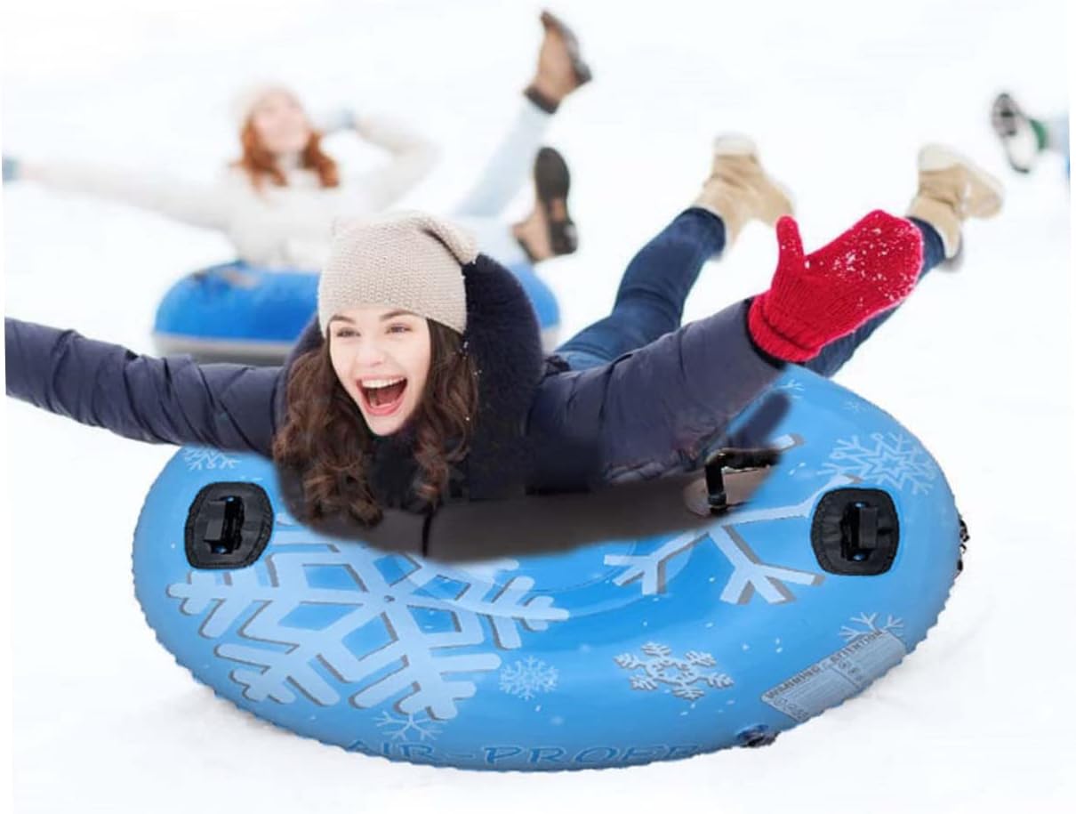Slitta da neve gonfiabile in PVC - Realizzata in materiale PVC di alta qualità, è resistente all'usura, durevole e pratica. Slitta da neve gonfiabile Robusto pneumatico da neve: il rivestimento in PVC rinforzato sul fondo consente di scivolare più velocemente durante lo slittino sulle colline innevate in inverno. slitta da neve Snowtube - lo snowtube da sci è la scelta migliore per divertirsi allenandosi all'aria aperta in inverno. Tubo da sci gonfiabile Slitta da neve in PVC - facile da mantenere e da pulire, basta pulire con un panno umido per garantire l'igiene, tubo da sci gonfiabile per esterni Tubo da neve gonfiabile - in inverno puoi portarlo con la tua famiglia e trascorrere un piacevole inverno. tubo da neve in pvc