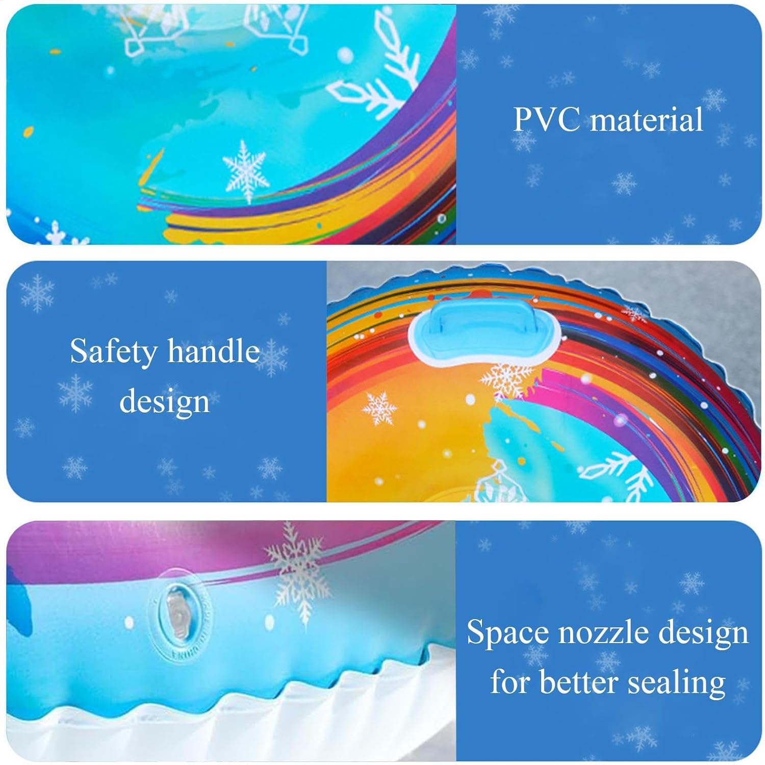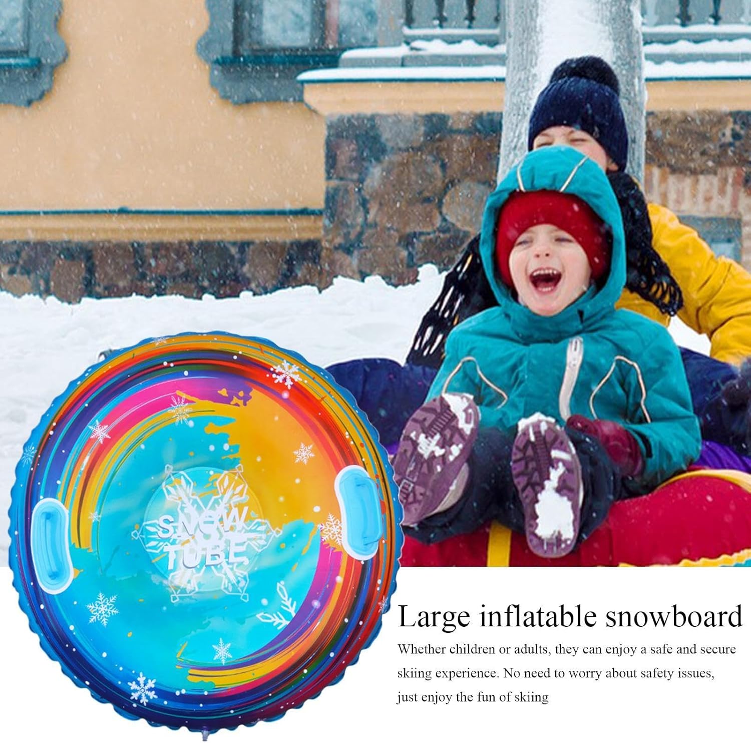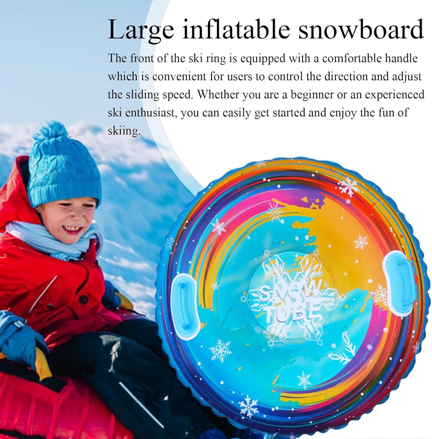 Design accattivante: preparati per un'indimenticabile avventura invernale con il nostro snowboard gonfiabile. Il suo design luminoso e colorato illumina i pendii innevati, aggiungendo un vivace tocco di divertimento alla tua esperienza di sci o snowboard. Stabilità semplice: con l'avanzato design anti-viaggio del nostro snowboard gonfiabile, sia gli adulti che i bambini possono scivolare con sicurezza senza sacrificare la stabilità. La sua struttura appositamente progettata elimina i problemi di sicurezza fornendo un'esperienza emozionante e sicura Materiale resistente al freddo: costruito con materiale ispessito per un uso a bassa temperatura, questo snowboard rimane morbido e flessibile quando fa freddo garantendo una maggiore durata, rendendolo robusto e durevole Facile da usare: naviga sulle piste senza problemi con il semplice controllo direzionale e la regolazione della velocità di questo snowboard gonfiabile. Dotato di una comoda maniglia nella parte anteriore, garantisce una guida fluida e una comoda maneggevolezza sia per i principianti che per gli sciatori esperti, rendendo gli sci un'esperienza piacevole Adattabile per persone diverse: il nostro snowboard gonfiabile è lo strumento sci perfetto per chiunque possa condividere. Con abbastanza spazio per bambini e adulti, è perfetto per attività familiari e feste di amici. Scatena il potere del lavoro di squadra e condividi il divertimento di sciare con le persone più vicine a te, crea ricordi indimenticabili lungo la strada