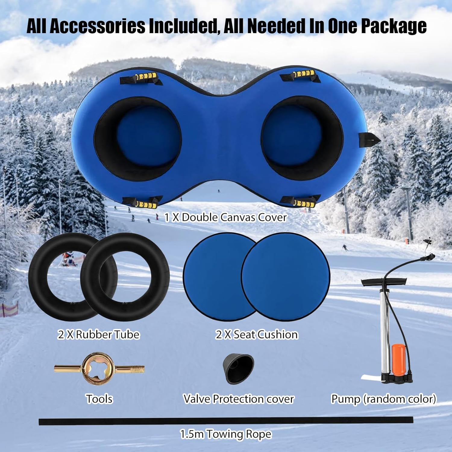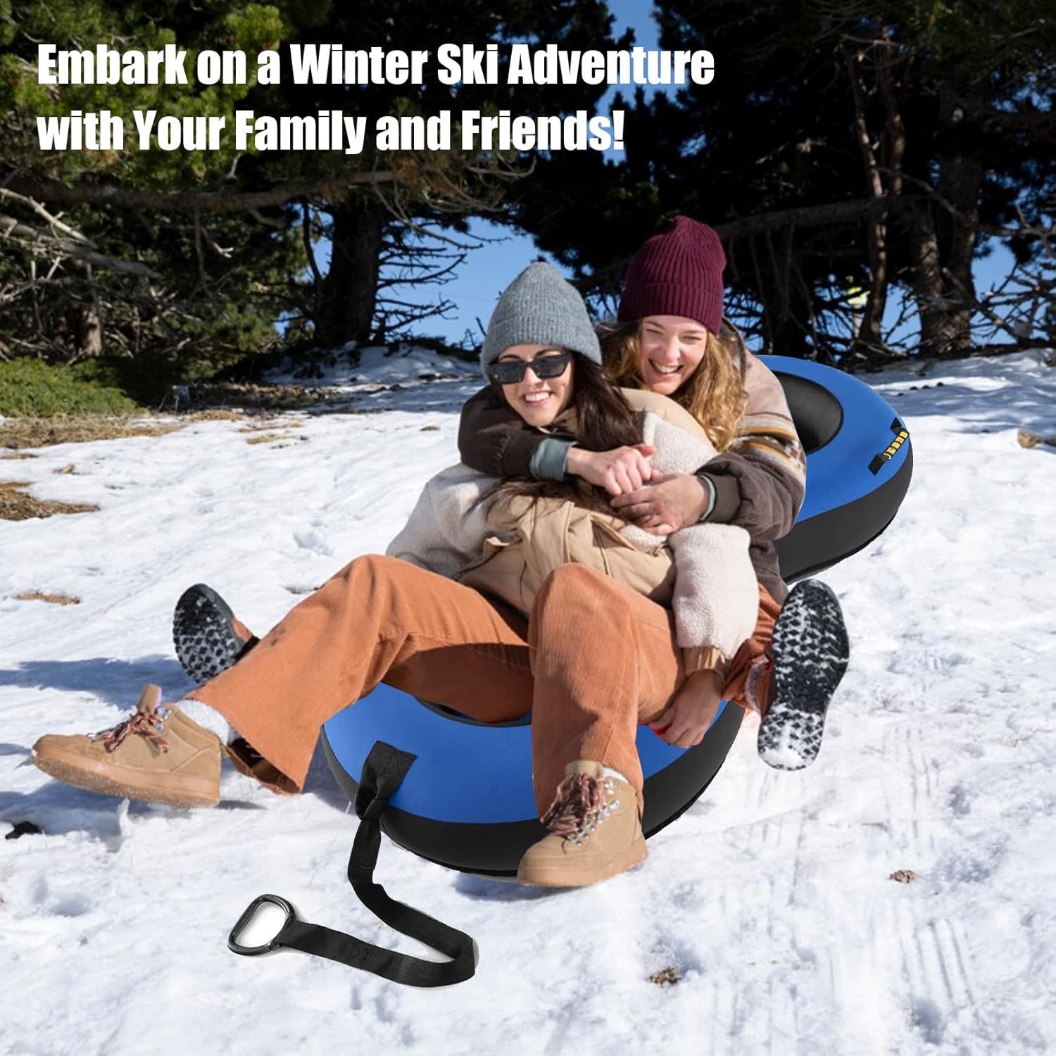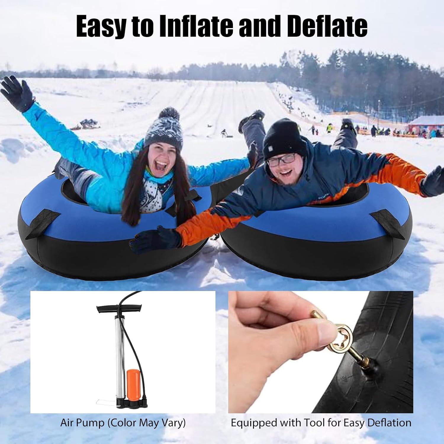【Perfetto per 2 persone】 La slitta doppia misura 200 x 98 x 23 cm (lunghezza x larghezza x altezza) ed è particolarmente adatta per due persone. Offre più spazio per due passeggeri, ad esempio un genitore e un figlio o due bambini. Con una capacità di carico fino a 400 kg, è l'ideale per le avventure invernali con la famiglia o gli amici. 【Pratica cinghia da traino e maniglia di sicurezza】 Lo pneumatico da neve è dotato di una cinghia da traino rimovibile che consente di tirarlo senza sforzo su per la collina e trasportare i bambini in giro. Ci sono anche 4 maniglie fissate allo pneumatico da sci, che rendono la direzione di marcia più sicura e più facile da controllare. 【Robusto e durevole】 Lo snowtube è realizzato in tessuto Oxford rinforzato a doppio strato e gomma di alta qualità, che garantisce un'eccellente resistenza all'abrasione e alla perforazione. Il pavimento è realizzato in PVC laminato, che è più spesso del normale materiale vinilico, garantendo resistenza e durata complessive. Ciò significa che è progettato anche per temperature fredde fino a -30 °C, garantendo un uso esterno a lungo termine. Facile da gonfiare e sgonfiare: il pneumatico per slittino è dotato di una pompa ad aria universale che consente un gonfiaggio rapido e senza sforzo. Una valvola vorticosa e a prova di perdite impedisce all'aria di fuoriuscire. Inoltre, è incluso uno strumento per rimuovere la valvola dallo sfiato per garantire un rilascio dell'aria ancora più rapido. (Nota: il colore della pompa dell'aria può variare). Gli accessori sono estremamente estesi. Il cuscino del sedile incluso garantisce a te e alla tua famiglia una seduta particolarmente comoda sullo pneumatico da sci. Tu e i tuoi cari potrete così prepararvi per un'avventura invernale indimenticabile!