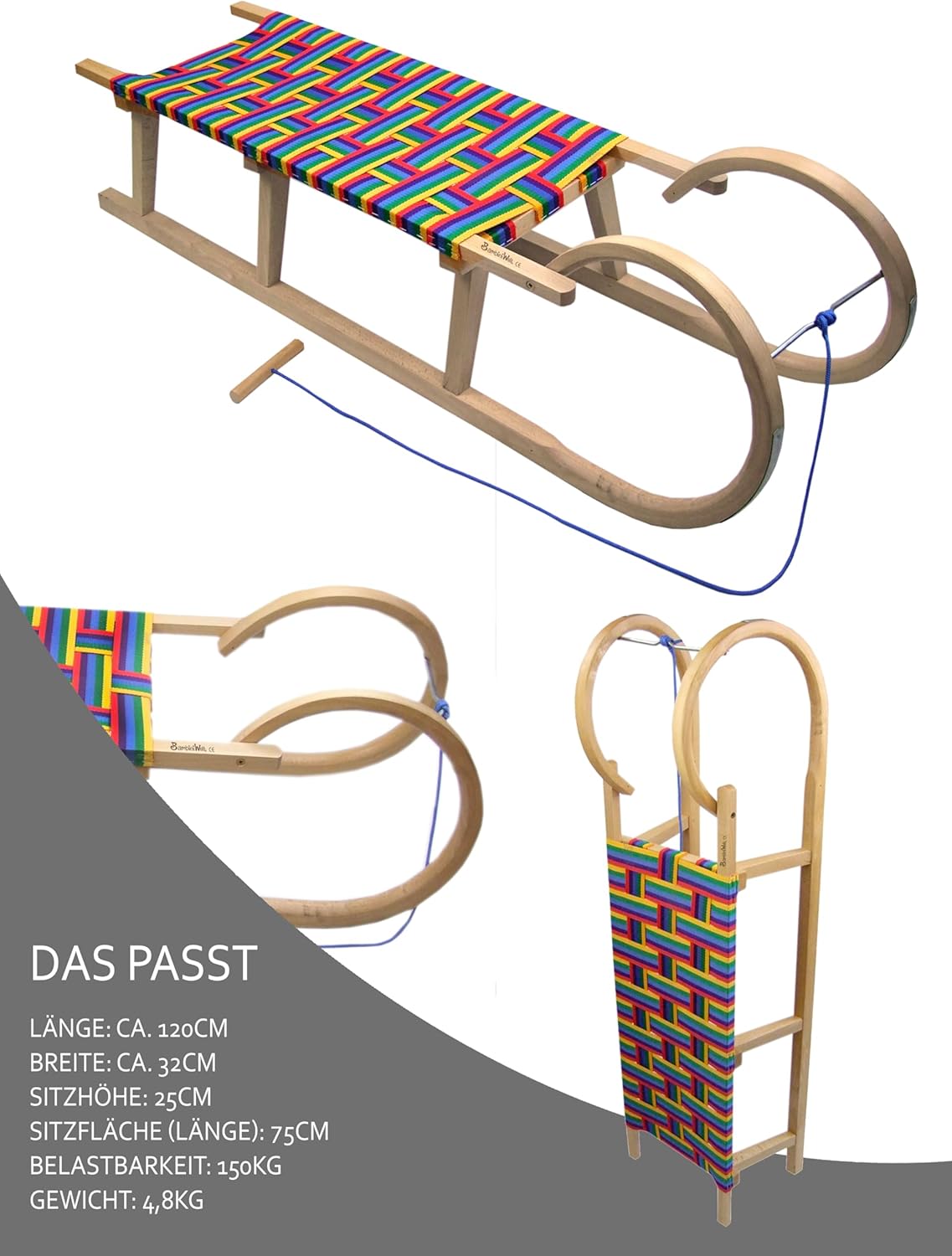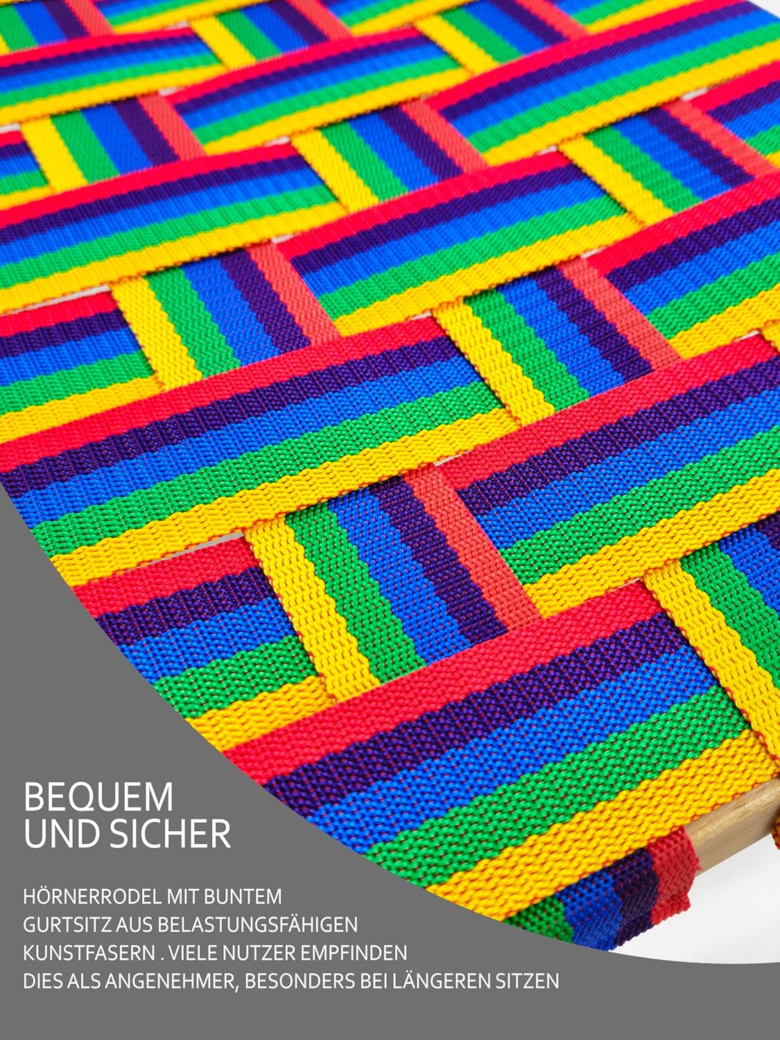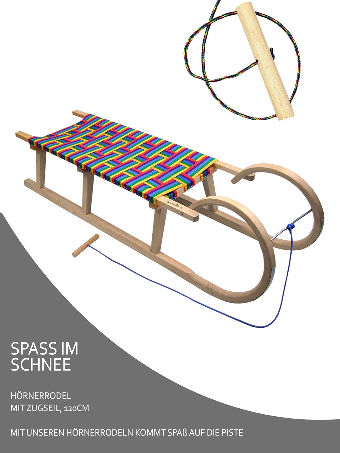 SICURO E CONFORTEVOLE – Il grande slittino a corno in legno massello di faggio offre spazio per 2 persone. Lo schienale garantisce che anche i bambini piccoli dai 12 mesi in su si siedano in sicurezza. CONFORTEVOLE SEGGIOLINO CON CINTURA - Il colorato sedile con cintura realizzato in resistenti fibre sintetiche è piacevole e confortevole, anche durante i tour in slittino più lunghi. I bambini e gli adulti si siedono in modo stabile e confortevole. COSTRUZIONE ROBUSTA - Listelli in legno massello avvitati, bordi smussati e estremità arrotondate garantiscono stabilità e longevità. Ideale per numerose escursioni invernali. SLITTINO VELOCE E FACILE - I pattini incollati in compensato aumentano l'elasticità e la resistenza. I raccordi scorrevoli in acciaio (verniciati a polvere) garantiscono velocità e un'esperienza di guida sicura.