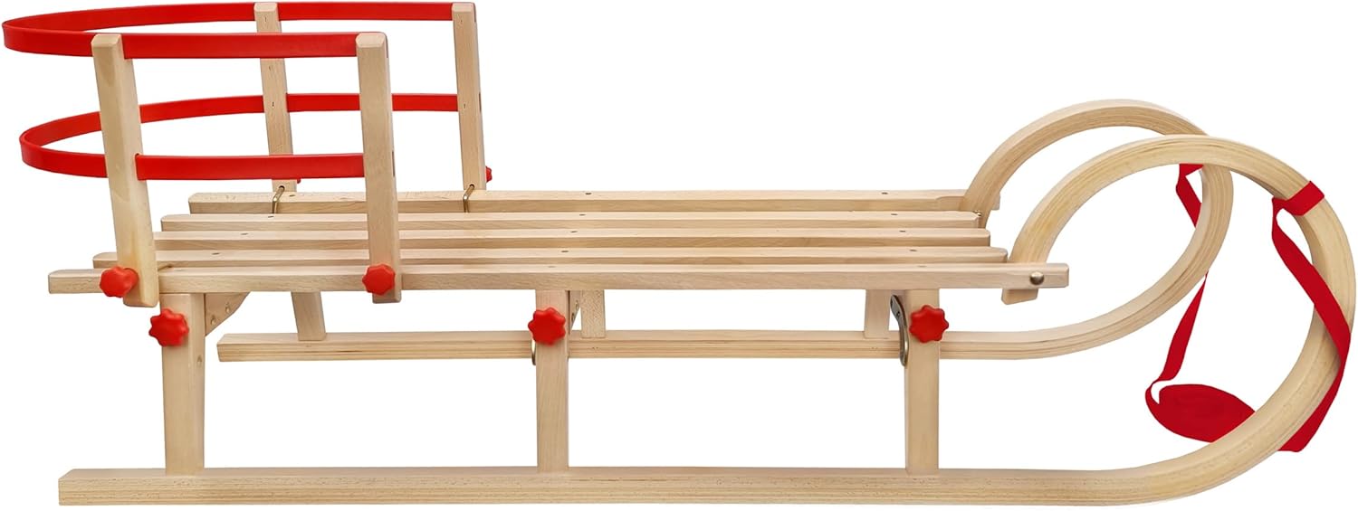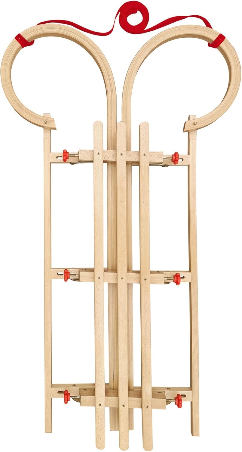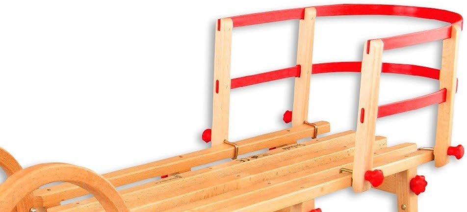 Slittino di qualità con molto spazio - lungo 125 cm. Si ripiega per risparmiare spazio: sta bene dietro l'armadio in estate e occupa poco spazio nel bagagliaio dell'auto in inverno. Ciò facilita il trasporto di più slitte per tutta la famiglia. Adatto per due persone. Accessori opzionali come schienale removibile, comodo push rod, caldi coprigambe con fodera in lana vergine. Costruzione stabile in legno massello di faggio (foreste europee, legno verniciato chiaramente per protezione) Lunghezza slitta 125 cm Altezza sedile ca. 24cm