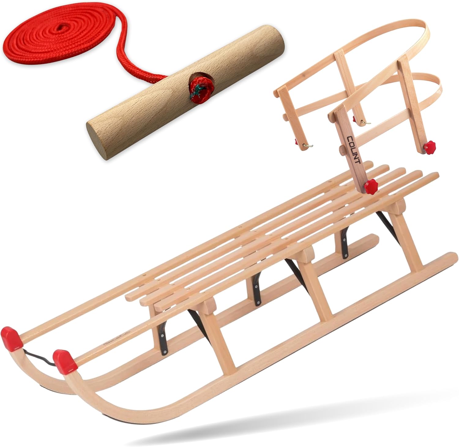 Pacchetto combinato: slitta in legno e sacco a pelo invernale (108 cm). Il pacchetto si compone di: Slittino in legno con schienale e corda da traino e un sacco nanna invernale in lana d'agnello. Slitta in legno di faggio laccato con colori naturali, pattini in metallo, cavalletto e ferro verniciato a polvere, schienale (rimovibile) e corda di traino. Sacco nanna invernale universale in lana d'agnello, adatto per ovetto, passeggino e slitta, per cinture a 3 e 5 punti, montaggio facile e veloce, impermeabile e antivento.