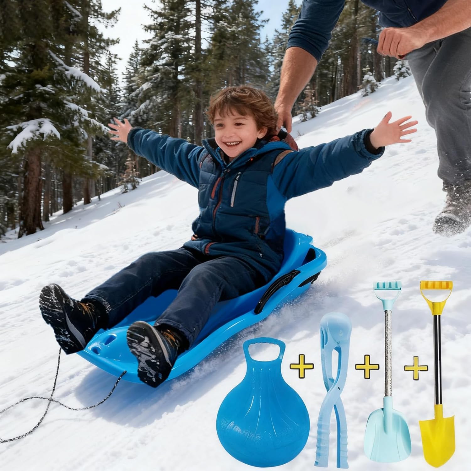 Avventure dinamiche all'aria aperta: la tavola da slittino offre velocità entusiasmante e funzionalità affidabile su neve, erba e sabbia, rendendola ideale per avventure all'aria aperta nei parchi o sulle spiagge. Gli utenti vivono appieno la gioia di attività ricreative dinamiche, con momenti emozionanti ed esperienze indimenticabili che fanno battere forte il cuore e avvicinano la natura. Sicurezza e prestazioni di scivolamento migliorate: questa slitta con maniglia presenta bordi arrotondati che prevengono graffi durante l'uso e una base liscia che garantisce un attrito minimo sulle superfici ghiacciate. Offre un'esperienza di slittino affidabile e divertente per tutte le età in ambienti innevati. Lavoro di squadra e legame: lo slittino consente esperienze condivise attraverso il supporto di un massimo di due persone, offrendo alle famiglie l'opportunità di rafforzare i propri legami mentre si impegnano in attività ricreative invernali sicure. Queste attività condivise promuovono la comunicazione e le esperienze condivise, che intensificano i legami familiari e migliorano il lavoro di squadra tra genitori e figli, creando momenti indimenticabili sulla neve. Pratica soluzione per riporre le slitte: le slitte per bambini offrono un vantaggio pratico significativo grazie alla loro capacità di adattarsi perfettamente a piccoli spazi come bagagliai o armadietti. La loro struttura leggera semplifica il trasporto e aggiunge facilità e gioia alle avventure in famiglia e alle riunioni all'aperto. Lo stoccaggio salvaspazio e la facilità d'uso garantiscono ulteriore comodità durante l'uso e li rendono la scelta ideale per una migliore stabilità di scivolamento: questi slittini per bambini e adulti hanno un design aerodinamico ben studiato con un bordo anteriore leggermente curvo verso l'alto, che migliora notevolmente la stabilità di scivolamento. Ciò significa che scivolano dolcemente e stabilmente lungo i pendii innevati senza ribaltarsi, rendendoli ideali per il divertimento sicuro in famiglia all'aperto durante le attività invernali sulla neve.