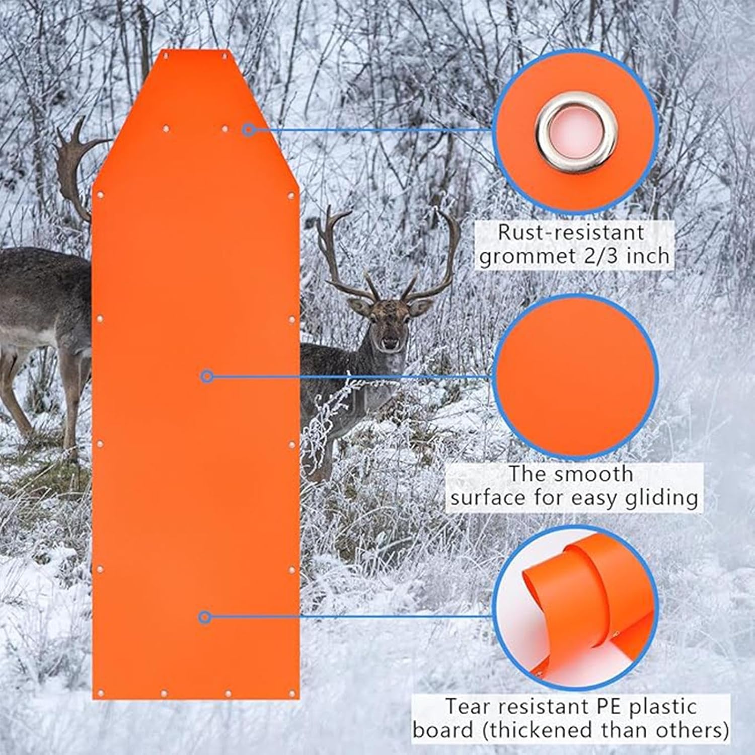 Design robusto: la nostra slitta per cervi vanta una struttura con materiale PVC composito per carichi pesanti spesso 1,2 mm, rinforzato con una corda in nylon per la massima stabilità. In grado di sopportare il più grande dei cervi, il che lo rende il compagno perfetto per il trasporto senza sforzo Trasporto senza sforzo: realizzata con una struttura robusta per garantire una caccia più , questa slitta per cervi trasporta facilmente la tua preda, facendoti risparmiare ed energia preziosi Carico e scarico facili: progettata per la tua comodità, questa slitta per cervi presenta un carico e scarico facile e veloce, assicurandoti di essere pronto per la prossima caccia; la sua consistenza morbida rende la pulizia un gioco da ragazzi Funzionalità multi-terreno: sperimenta la facilità di trasportare la preda su diversi terreni come , radici di alberi, sabbia, terra, fango, neve e ghiaccio con questa slitta per cervi Utilità versatile e portabilità: con un design leggero e dimensioni compatte, trasporta e conserva senza sforzo, sia che si trasporti legna da ardere, attrezzatura da campeggio o carichi pesanti; perfetto per diverse avventure all'aria aperta