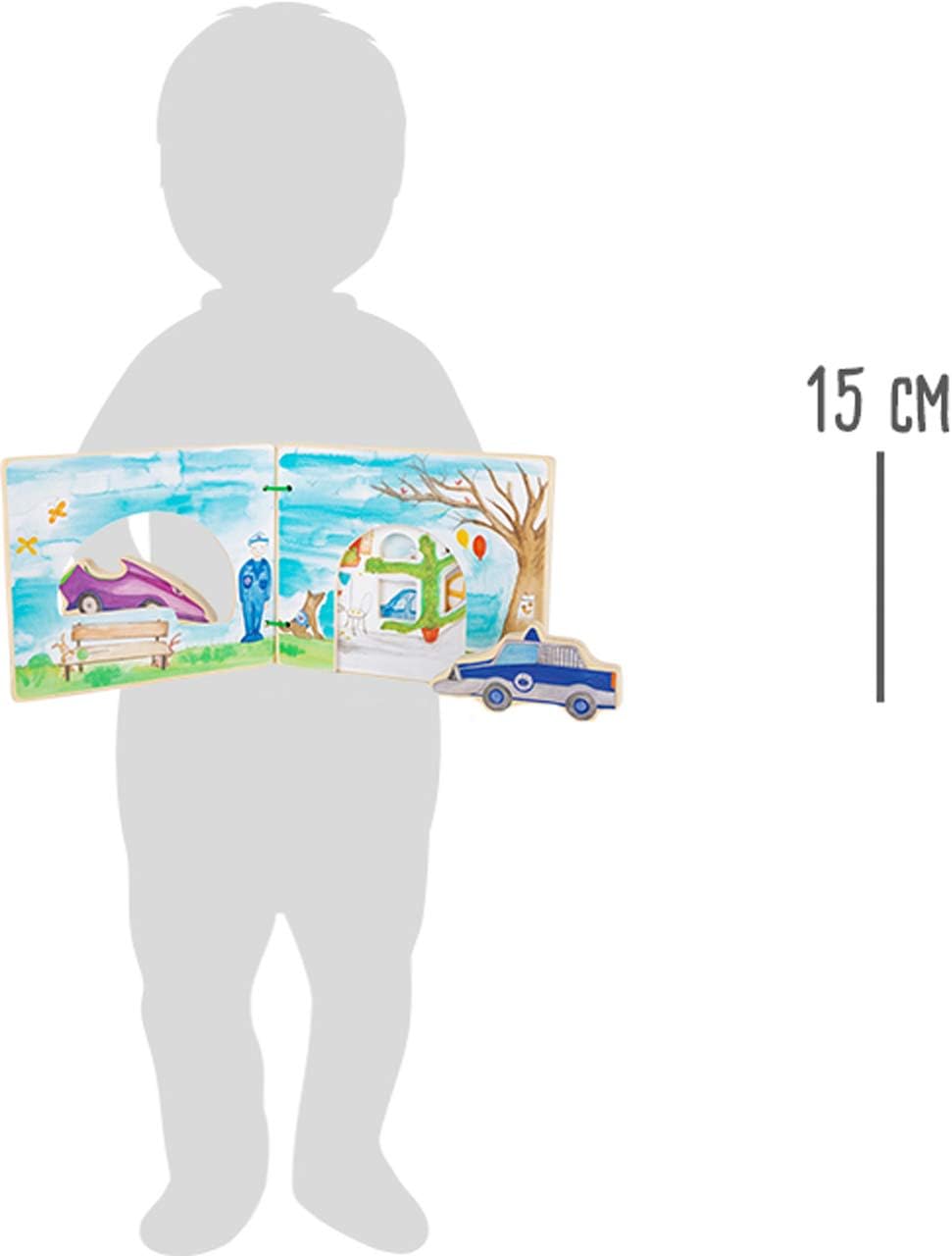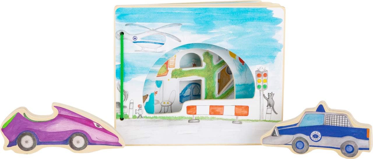 FSC 100%: questo prodotto è realizzato interamente in legno proveniente da foreste certificate FSC Le diverse aperture su ogni lato danno un'anteprima al motivo successivo Le auto in legno e le statuette in legno possono essere facilmente fissate al dorso del libro grazie ai collegamenti in velcro Il racconto delle storie autonomo stimola l'immaginazione dei bambini e li fa scoprire giocosamente la polizia Le pagine del libro sono perfette per le piccole mani dei bambini