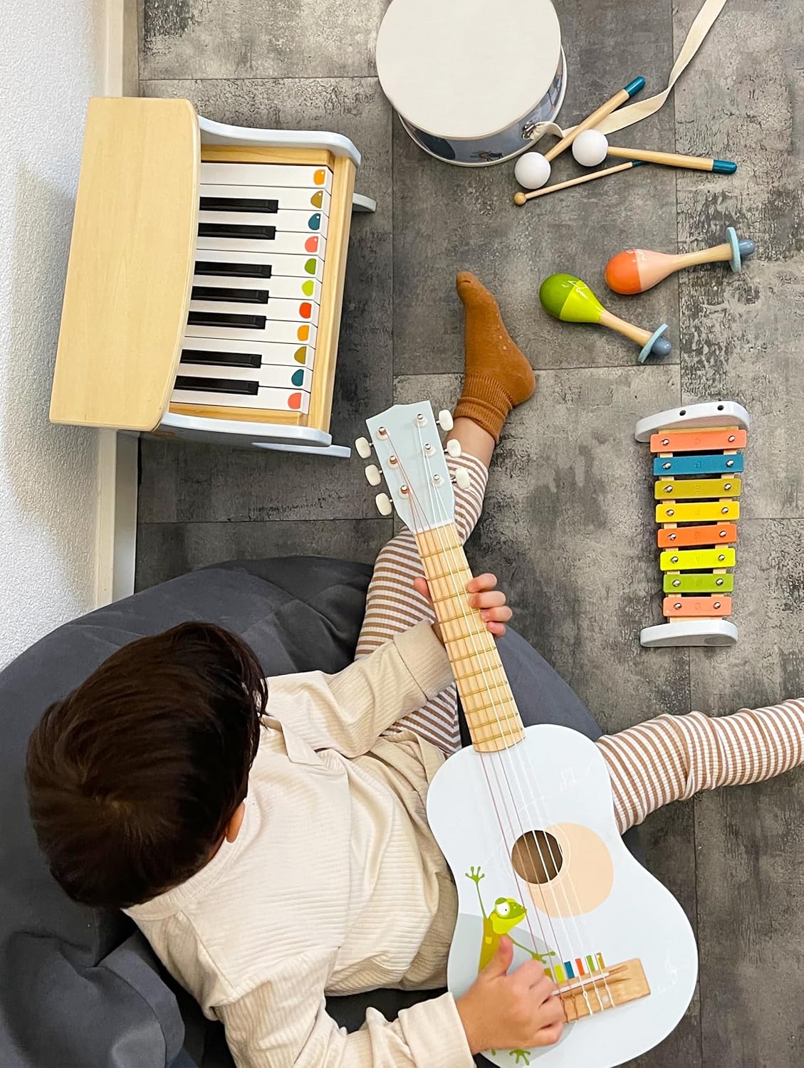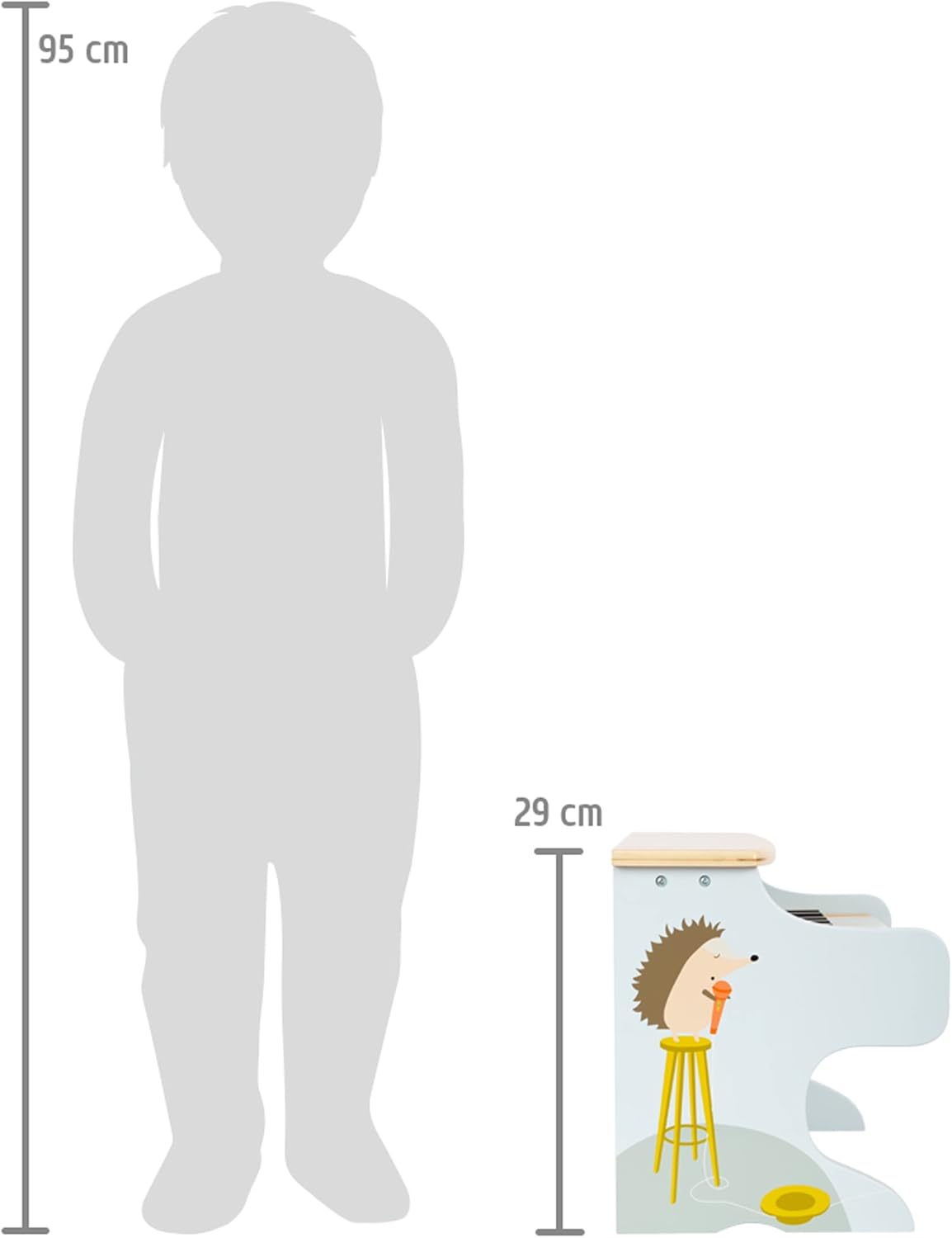Il pianoforte in legno elettronico convince grazie ad una qualità del suono molto buona Grazie allo spartito fornito ci si può esercitare a suonare la prima canzone propria Gli adesivi forniti possono essere incollati sulle piastrine delle note contrassegnate da diversi colori per aiutare i musicisti a partire dai 3 anni a suonare le prime canzoni Ideale come primo strumento in quanto promuove la comprensione delle tonalità, allena la percezione acustica e trasmette il senso del ritmo Strumento musicale realizzato con cura, che piace dal punto di vista estetico grazie alla grande quantità di legno al naturale, alle moderne tonalità di blu e ai motivi adatti ai bambini infantile