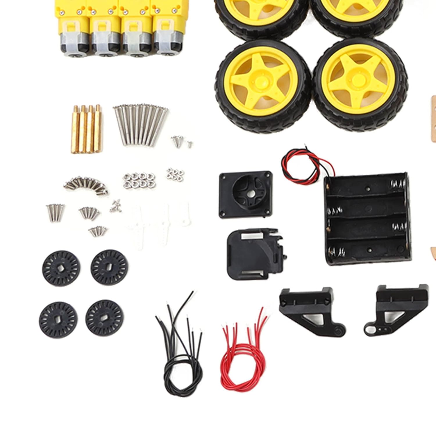 Robot Smart Car Platform Tracking Motor Chassis Kit DOTATO DI: Questo kit telaio per auto robot intelligente dotato di codice tachimetro a 20 fili e una fotoelettrica per formare rapidamente sistema. Può essere composto da velocità, distanza e sistema a ciclo chiuso. Kit completo: accessori completi per telaio per auto robot intelligente fai-da-te, con struttura meccanica semplice, molto facile da montare. MATERIALE PREMIUM: l'intero sistema del kit telaio per auto robot intelligente è altamente integrato e realizzato con materiali eccellenti, consentendo utilizzo a lungo termine. Con interruttore: allo stesso tempo, il telaio è dotato di interruttore per facilitare l'avvio e l'arresto del sistema, facile da usare.