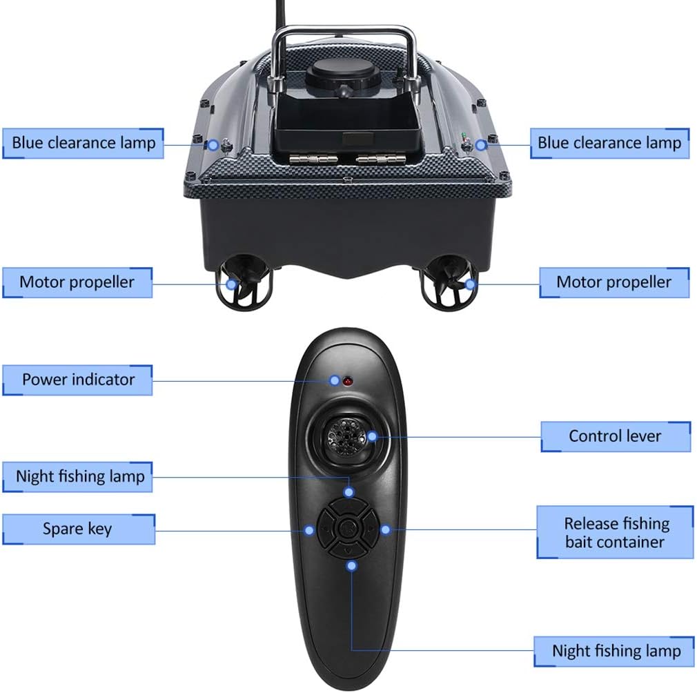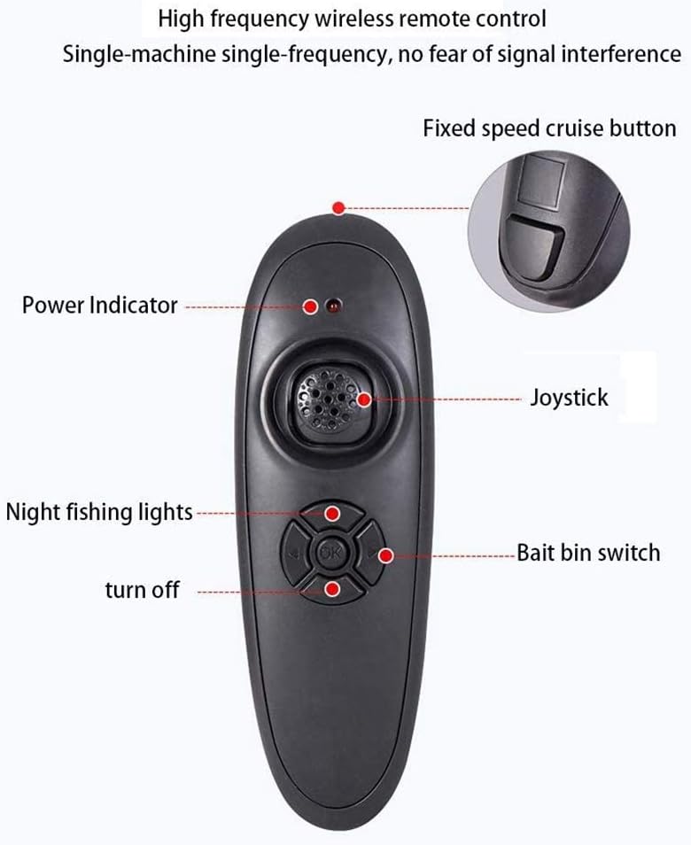 Distanza remota di 500 m: 500 m senza interferenze, il segnale è più stabile in un ambiente limpido. Nessuna interferenza di navigazione e trasmissione: circuito speciale e speciale dispositivo di controllo remoto con modulazione di frequenza digitale automatica, risolvono completamente l'interferenza tra molte trasmissioni di navigazione. Grande capacità: serbatoio per esche di grande capacità, può contenere esche da 1,5 kg. Batteria integrata 18650 da 5200 mAh, lungo tempo di standby fino a 2-3 ore. Facile da usare: materiali ABS, più stabili e stabili, resistenti al vento e alle onde. Avvio rapido, facile da usare e facile da installare. Per gli appassionati di pesca: bait boat molto funzionale e utile per gli appassionati di pesca.