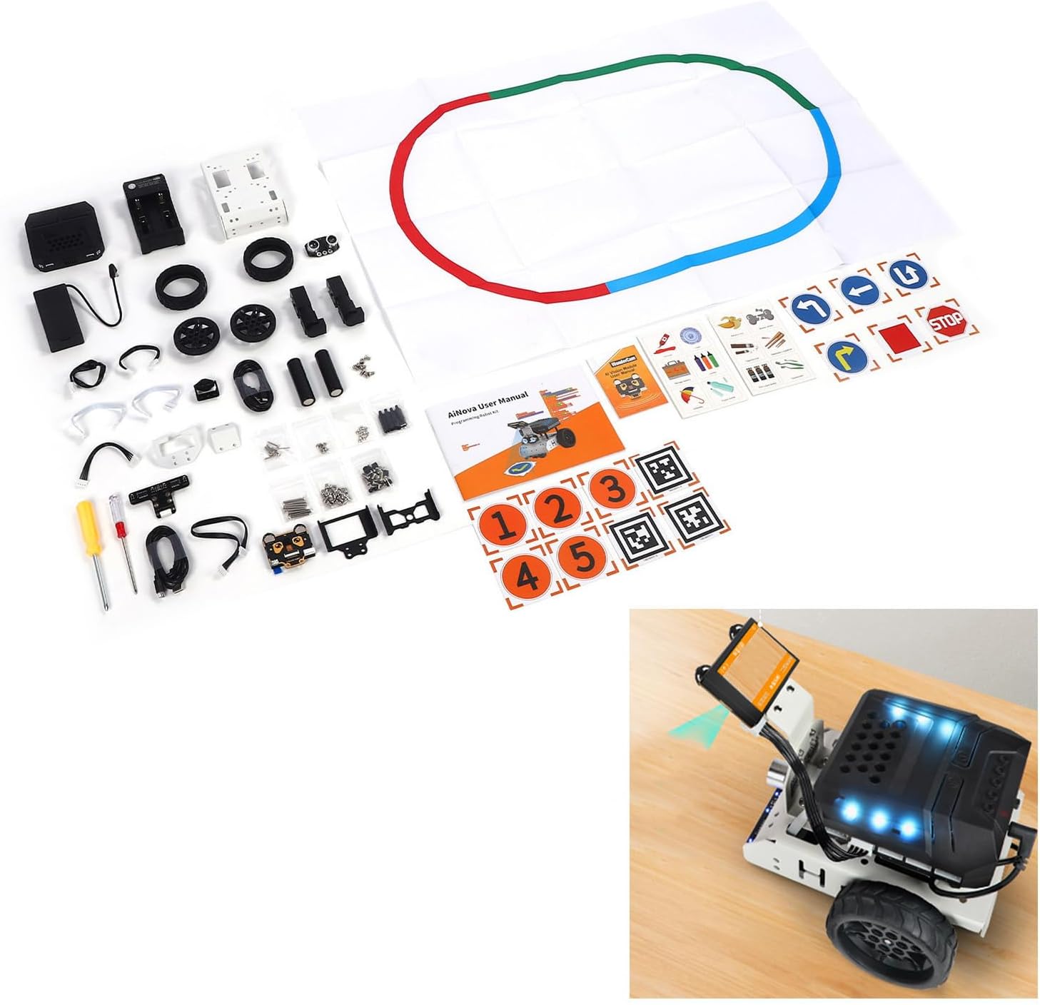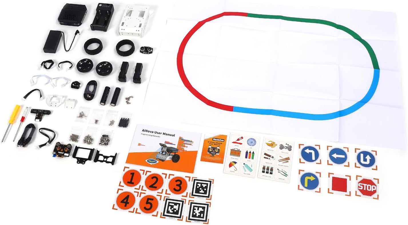 [Riconoscimento visivo intelligente] dotato di una tecnologia di rilevamento visivo avanzata coscienza ambientale autonoma. Supporta la programmazione di graffi e la codifica Python. Ideale per tutti i livelli utente. [Design compatto] Luce e portatile per l'uso in case, scuole e stabilimenti di ricerca. Miglioramento della percezione con diversi sensori e telecamere. [Funzionalità di alimentazione AI] Spinto dall'IA per graffi. Contiene un modulo WONDDRCAM -AI - per il rilevamento dei colori, il monitoraggio della e il monitoraggio del target. [Potente attrezzatura] ha 4 -Poller, modulo di vista AI, sensori, motori encoder, luci RGB e altro ancora per le funzioni migliorate. [Formazione in 1 ] Algoritmi di apprendimento per progetti di visione AI, compresa la classificazione di immagini e funzionalità di apprendimento. Adatto a fini educativi e di ricerca.