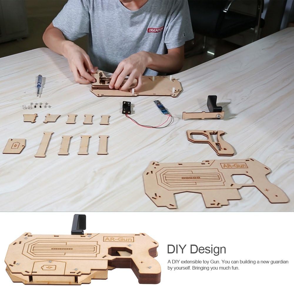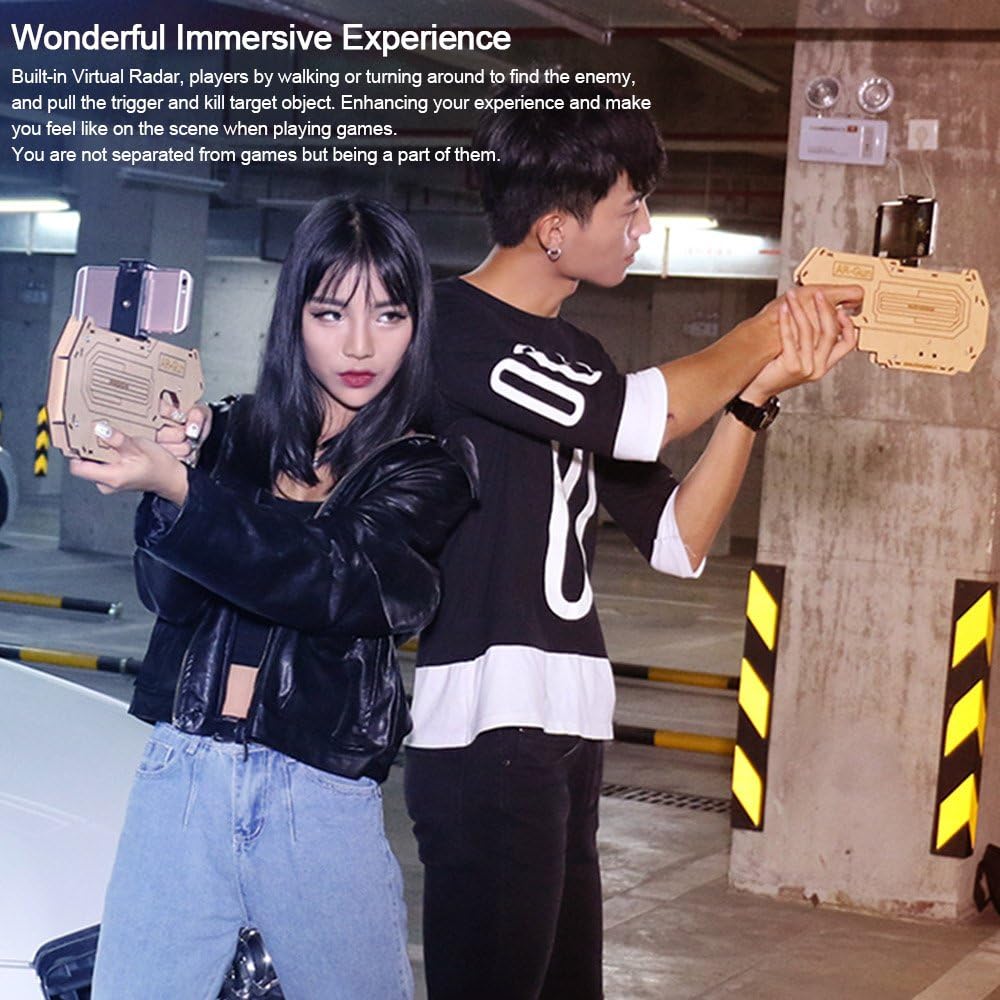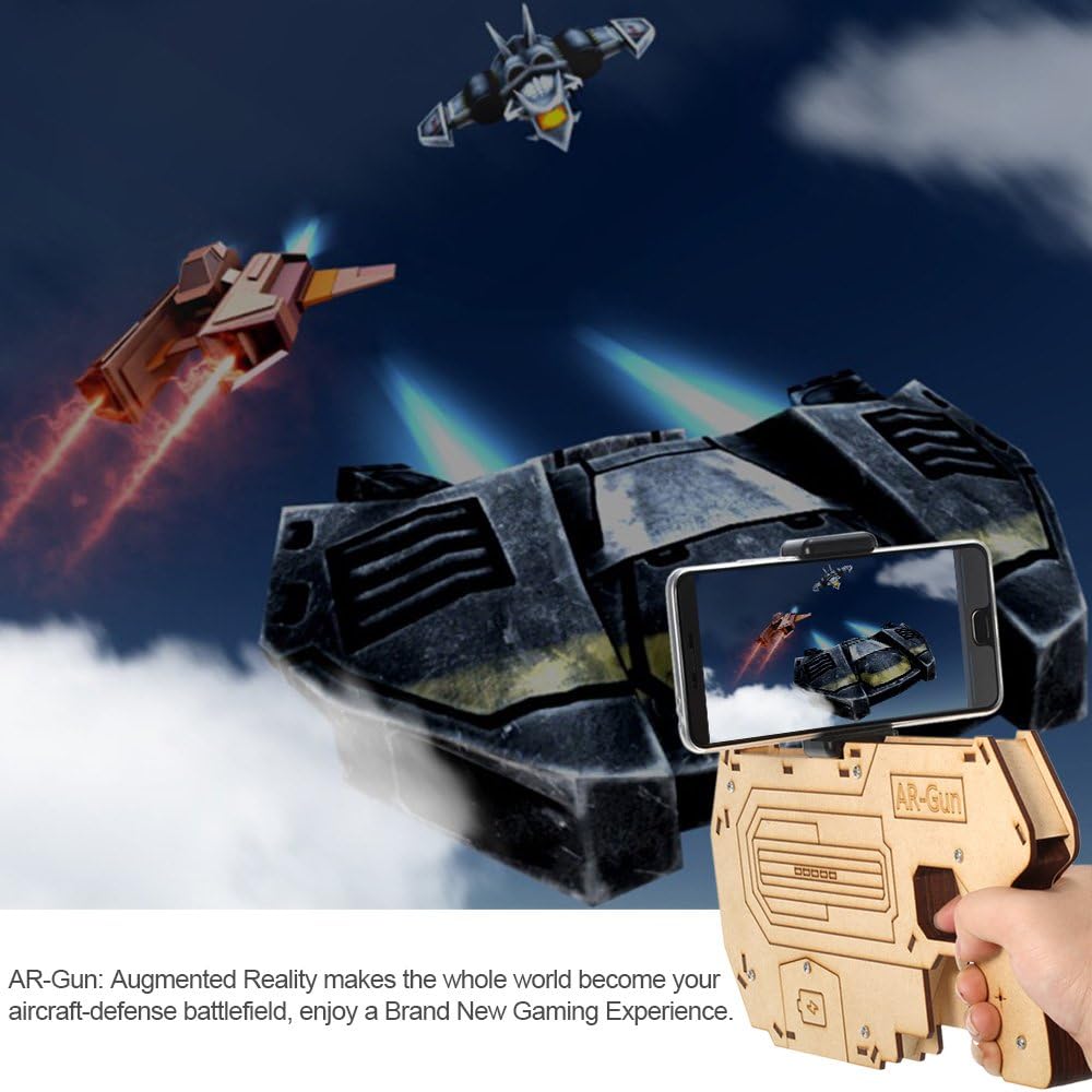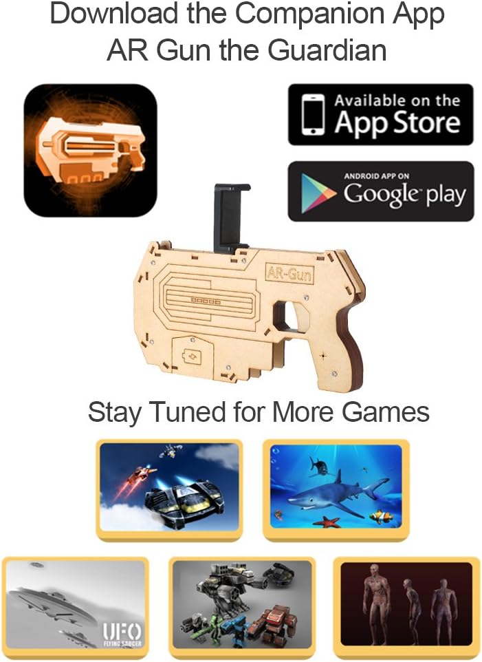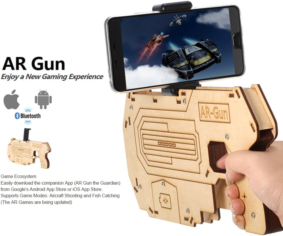 Tecnologia AR (Advanced Reality) AR-Gun è un giocattolo intelligente per giochi di tiro e una perfetta combinazione di tecnologia AR e tecnologia elettronica. Basta uno smartphone e cooperare con l'app AR – gnu che offre una meravigliosa fusione del mondo reale e l'esperienza di gioco virtuale aumentata, permettendo ai giocatori di godere di una realtà virtuale visiva, auditoria, sportiva con realtà virtuale. [Design fai da te] una pistola giocattolo estensibile fai da te. Puoi costruire un nuovo guardiano da soli. Divertimento assicurato. Meravigliosa esperienza Immersiva: Radar virtuale integrato, i giocatori camminando o girando per trovare il nemico e tirare il grilletto e uccidere gli oggetti di bersaglio. Migliora la tua esperienza e ti fa sentire come sulla scena quando giochi di gioco. Non sei separato dai giochi ma sei parte di loro. [Gioco Ecosystem] Scarica facilmente l'app compagno (AR Gun the Guardian) dall'App Store Android o iOS App Store. Supporta le modalità di gioco: tiro aereo e cattura pesci (i giochi AR vengono aggiornati). [Adotta materiali ecologici] Adotta il legno di alta qualità (matsuzaka), sano ed ecologico. Leggero, portatile e rimovibile.