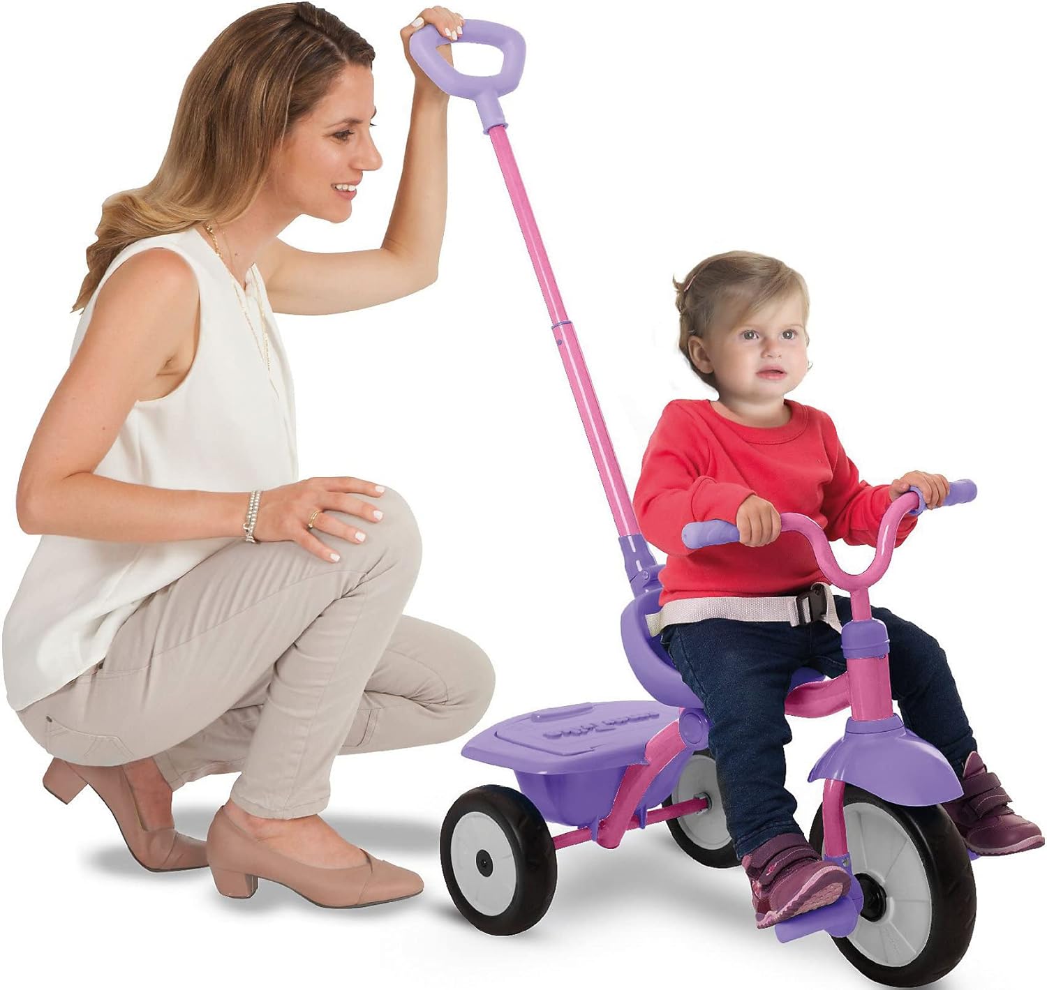 smarTrike S nuovo stabile e robusto 2 in 1 Folding Fun integra la linea SmartFold Il prodotto viene spedito piegato completamente montato. Si apre con un clic – nessuno strumento stella. È anche con un clic – piegato per semplice e compatto riposto Dispone di un' asta genitori cassetti, ruote EVA per un viaggio silenziosa, ruota libera frizione e cintura di sicurezza, e cesto con coperchio. Il triciclo è una struttura completamente in metallo ed adatto per bambini di 15 – 36 mesi.