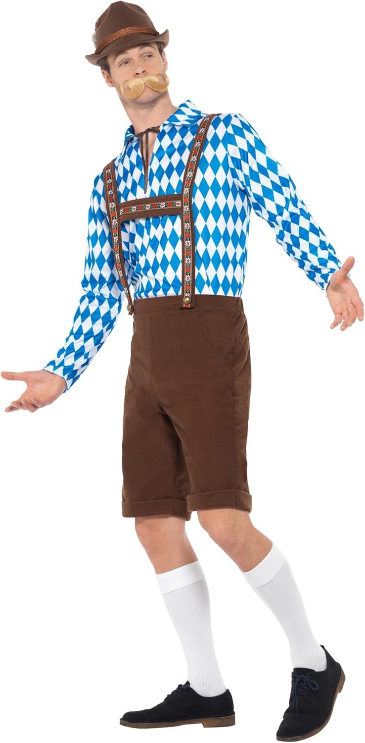 Includes Costume birraio bavarese,Blu e marrone,con camicia e Lederhosen. Si segnala che tutti i nostri prodotti saranno sempre imballaggi di marca Smiffys.