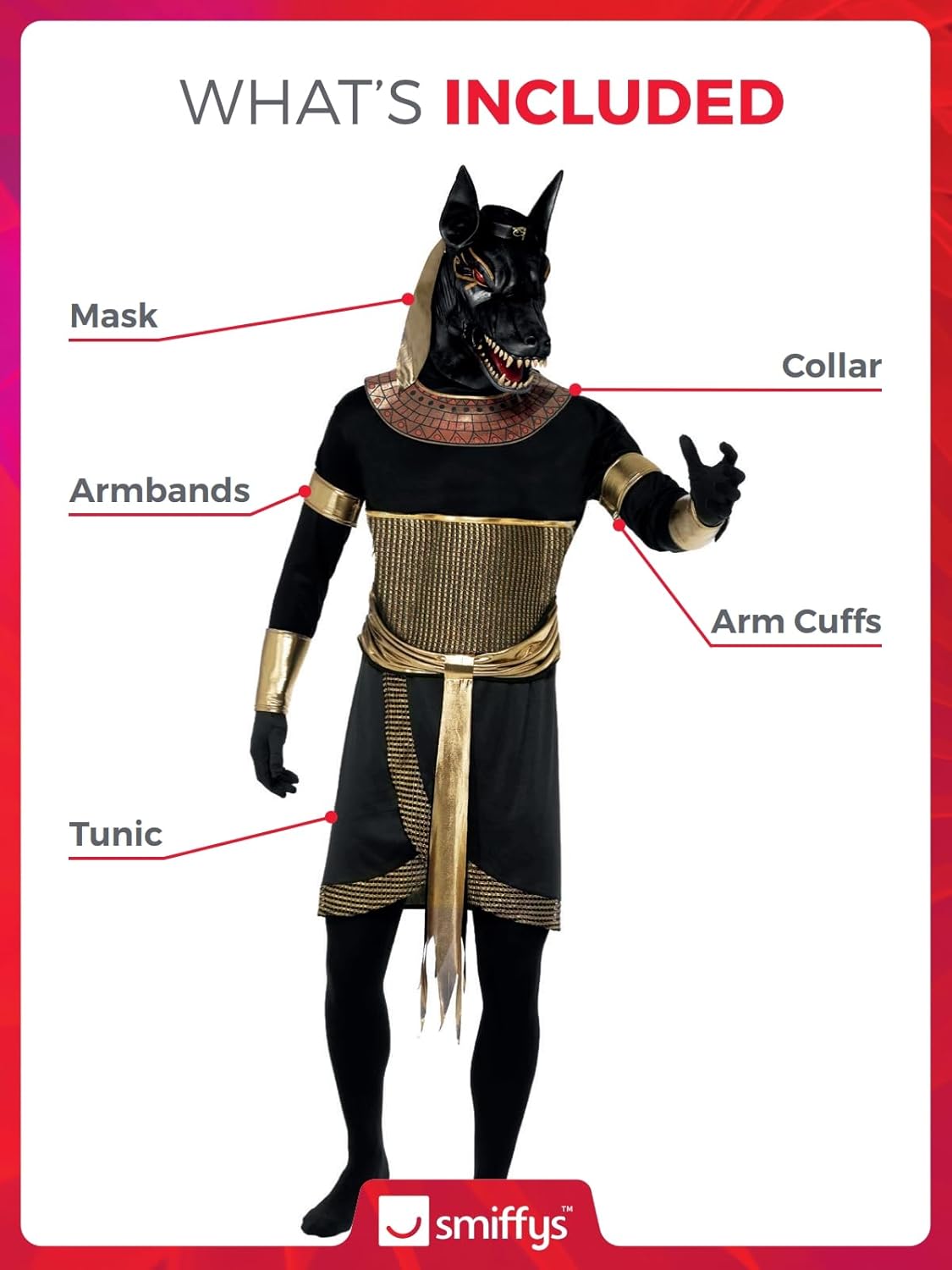 Includere Costume Anubi lo Sciacallo, Nero, comprende Tunica, Collare, Polsini, Bracciali Petto 42"-44" / Girovita 36"-38" / Cucitura interna da gamba 33" Il nostro team dedicato alla sicurezza interna garantisce che tutti i nostri prodotti sono fabbricati e rigorosamente testati per essere conformi alle più recenti norme e normative di sicurezza europee e americane Smiffys è uno fornitore leader nel settore della costumi e della azienda famiglia con 123 anni d'eredità di costumi, parrucche, trucco e accessori Si segnala che tutti i nostri prodotti saranno sempre imballaggi di marca Smiffys