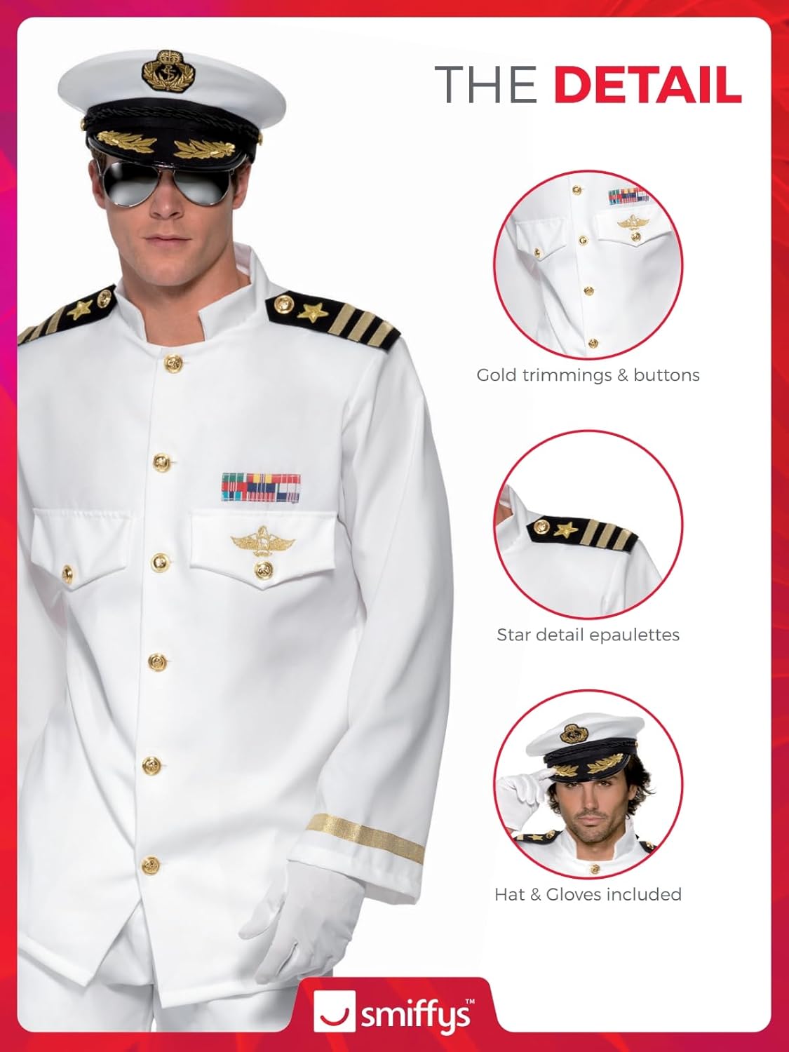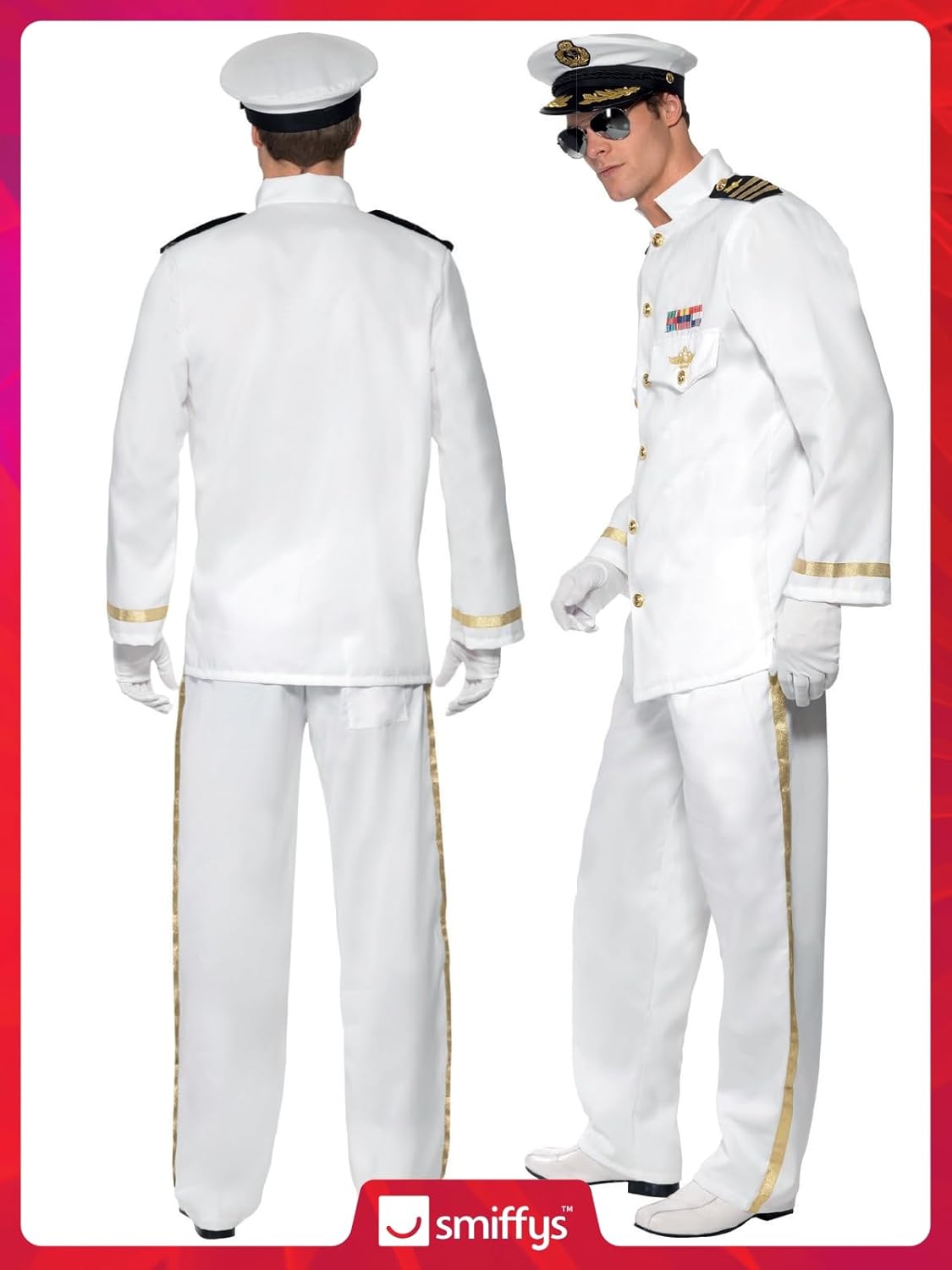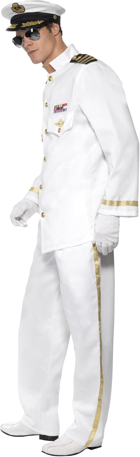 Includere Costume deluxe da capitano, bianco con giacca, pantaloni, mantello e guanti Petto 46"-48" / Girovita 40"-42" / Cucitura interna da gamba 3325" Il nostro team dedicato alla sicurezza interna garantisce che tutti i nostri prodotti sono fabbricati e rigorosamente testati per essere conformi alle più recenti norme e normative di sicurezza europee e americane Smiffys è uno fornitore leader nel settore della costumi e della azienda famiglia con 123 anni d'eredità di costumi, parrucche, trucco e accessori Si segnala che tutti i nostri prodotti saranno sempre imballaggi di marca Smiffys
