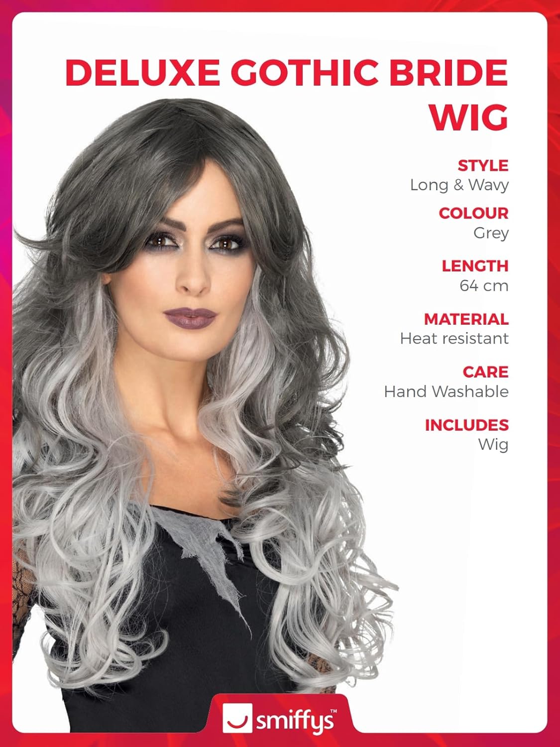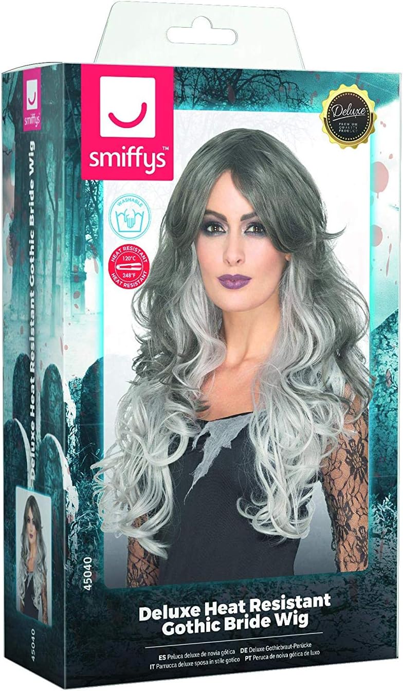 Includere Parrucca deluxe sposa in stile gotico, Grigia, resistente al calore/acconciabile Disponibile solo in una taglia Il nostro team dedicato alla sicurezza interna garantisce che tutti i nostri prodotti sono fabbricati e rigorosamente testati per essere conformi alle più recenti norme e normative di sicurezza europee e americane Smiffys è uno fornitore leader nel settore della costumi e della azienda famiglia con 123 anni d'eredità di costumi, parrucche, trucco e accessori Si segnala che tutti i nostri prodotti saranno sempre imballaggi di marca Smiffys