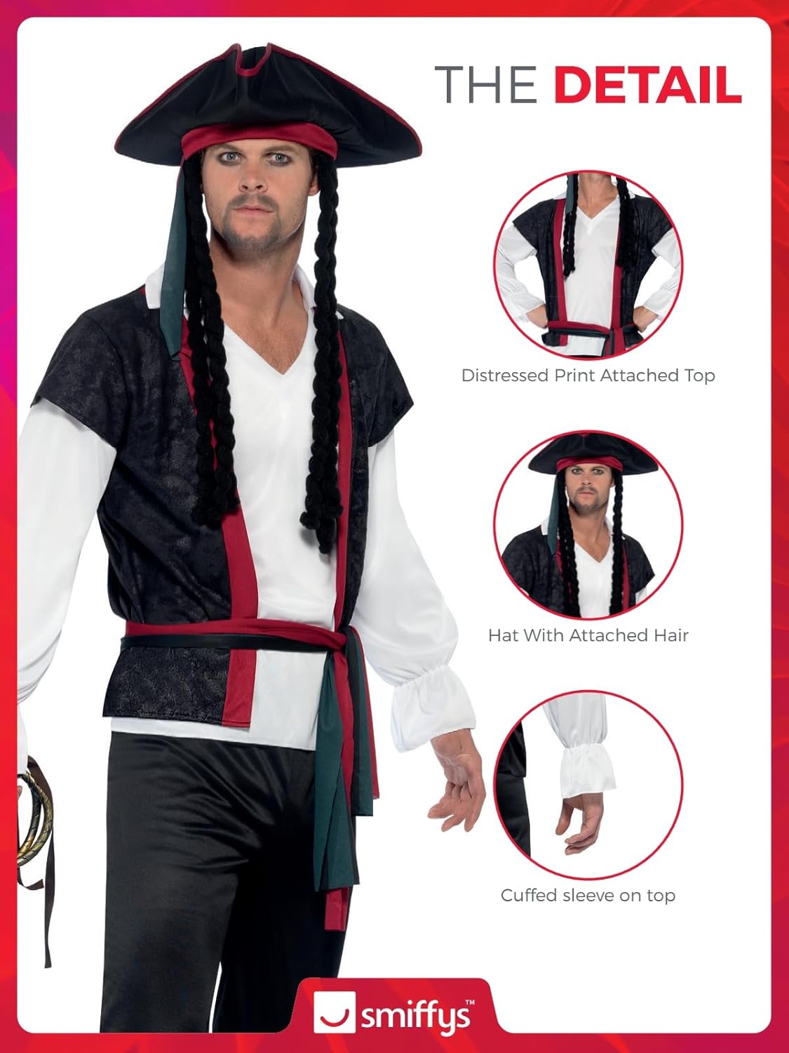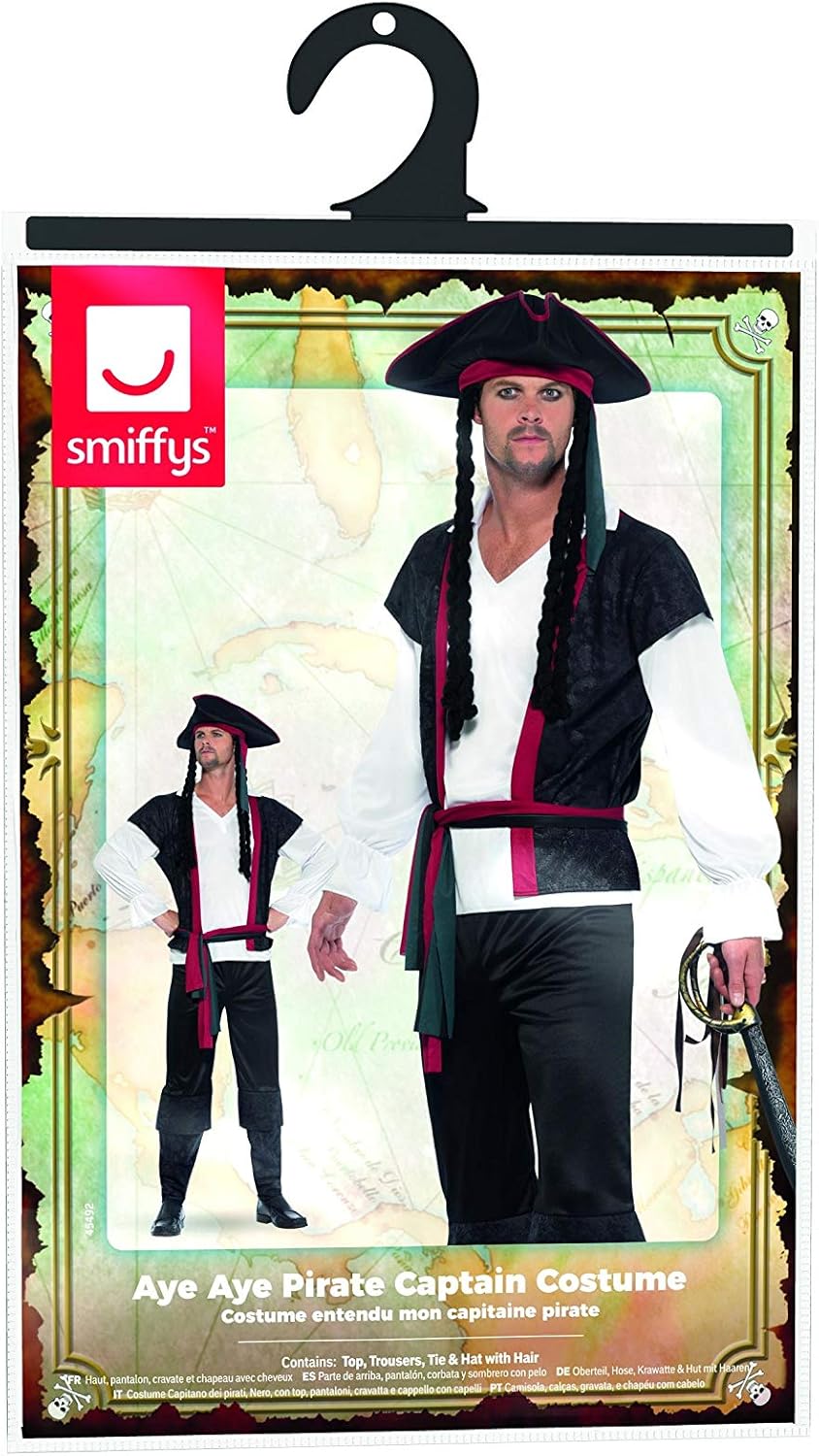 I'm a small framed person so got medium to make sure. All good except sleeves on shirt were short. Get some add effects such as sword,patch and hook. Earrings