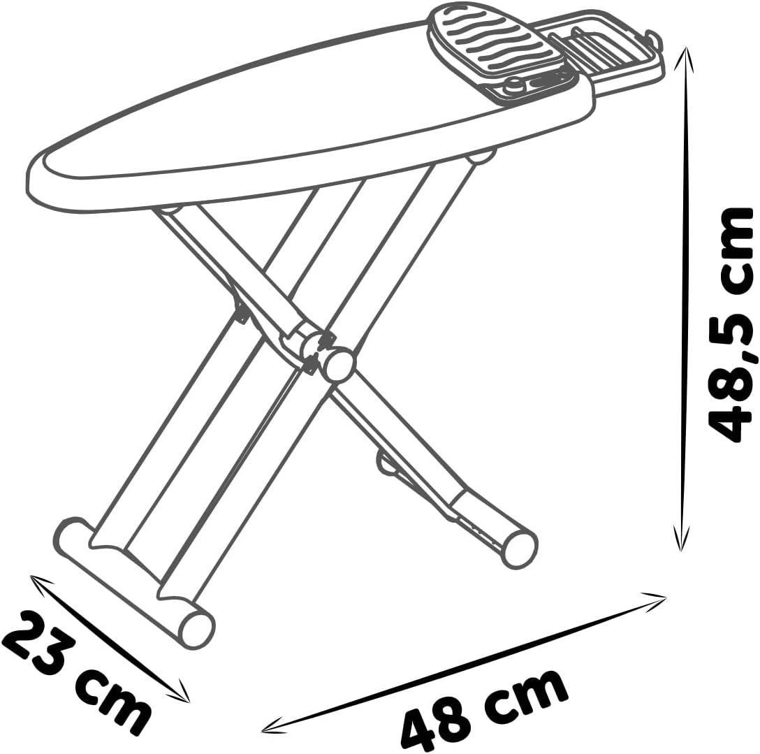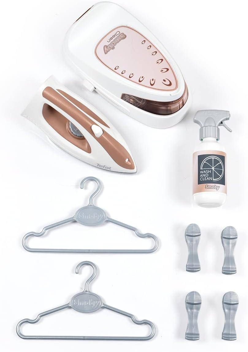 Grande asse da stiro pieghevole per bambini - asse da stiro da gioco dal design realistico su piedini - ideale per imitare le attività quotidiane. Include stazione per ferro da stiro a vapore Tefal e accessori: ferro da stiro giocattolo, flacone spray, mollette e grucce per un autentico divertimento di stiratura. Promuove il gioco di ruolo e la motricità fine - i bambini possono fare il bucato come mamma e papà - rafforza il senso di responsabilità e la comprensione della vita quotidiana. Facilmente pieghevole e salvaspazio: la stazione da stiro è facile da riporre, perfetta per piccole stanze o giochi mobili da portare con sé. Qualità Smoby dal 1924 - Attraverso costanti controlli di qualità, esperienza pluriennale, utilizzo di materiali di alta qualità e impianti di produzione all'avanguardia, garantiamo giocattoli sicuri. Fatto con amore in Francia.
