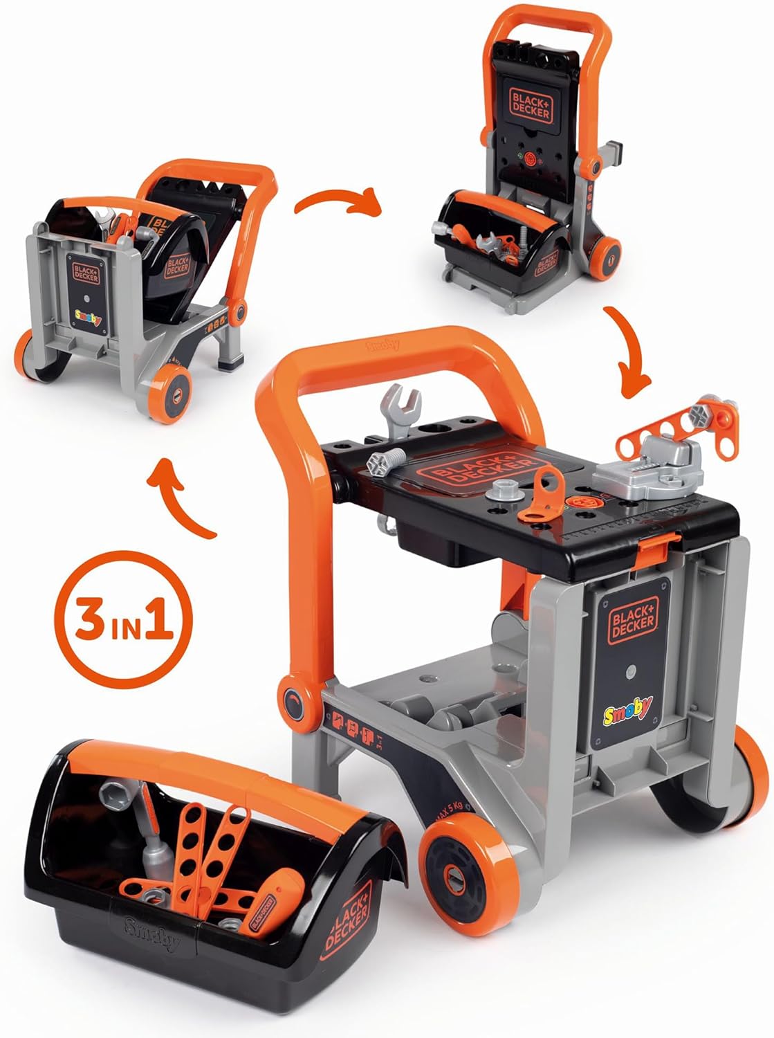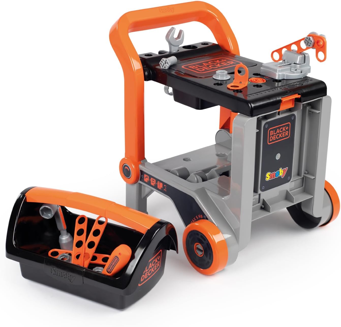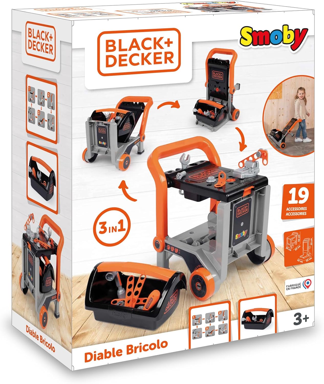 ✅ sehr gut bespielbares Design, nachhaltig, robust, der Wagen vielseitig umgestaltbar ⛔️ in der Grundausstattung ist die Werkzeugbox mager bestückt ???? KO-Kriterium: ???? solides Spielzeug, das nicht nach einer Saison Bruch ist ???? Sackkarre, Werkbank, Einkaufstrolley mit div. Werkzeug UND einen Schraubstock ???? Schauen Sie sich mal das Produktangebot auf der deutschen Website von SMOBY an ???? Verpackung: Karton, bedruckt, sehr gute Polsterung und korrekt verpackt, um Kratzer zu vermeiden ???? Plastik-Kunststoff ⚙️ solides Material, Black-Decker Design (also als Nachbau der Originale) ⚠️ Kann zB um eine große Stell-Werkbank mit über 100 Teilen erweitert werden Die Aufschrift Black+Decker zusammen mit dem bekannten Smoby Emblem hat mich bislang vermuten lassen, dass es sich hier um einen englischen Spielwarenhersteller handeln müsste. Auch die Spielhäuser und Rutschen waren mir bislang bekannt. Dass auch Fahrzeuge und eben so ein Flexi-Spielzeug als Werkstattwagen und Sackkarre ins Sortiment gehört, war mir bislang unbekannt. Und ich lag weit daneben. In dem französischen Departement Jura, in dem auch Lavans-lès-Saint-Claude liegt, werden 70 % unserer Produkte gefertigt. So produziert Smoby über seine 40000 qm Produktionsfläche in der überschaubaren Stadt Arinthod mit ca 1000 Einwohnern, keine 100km westlich des Genfer Sees. Wer von Deutschland aus ohne die Autobahnen in direkter Linie nach Lyon fahren würde, käme dran vorbei. Nun, das Spielzeug hatte ich zunächst nicht auf dem Zettel. Plastik dachte ich. Und es bleibt am Ende Kunststoff, aber in robuster Form und Haltbarkeit. Den Preis fand ich uninteressant. Der Kopf hatte sich ein Urteil gebildet ohne Fakten geprüft zu haben. Damit kleinen Handwerkern der Spielspaß nie ausgeht gibt es einen Schraubenschlüssel, Innensechskantschlüssel und Schraubenzieher sowie verschiedene Sets an Schrauben und Muttern. Dafür hat Smoby das Black+Decker Design lizensiert und so kann der Junior, die Juniorin (selten im Gebrauch, aber ja, Mädels schrauben auch gern und meine Töchter haben sich etliches bei mir [selbst Autodidakt] abgesehen und haben beileibe keine zwei linken Hände, obwohl zwei Linkshänderinnen darunter sind), eben auch mitwerkeln zB bei den Eltern auf der Baustelle oder auch in einer Werkstatt/Garage helfen wollen. Persönlich finde ich den Schraubstock das Beste am Zubehör. Aber am Ende überzeugt mich die Vielseitigkeit des Spielzeugs: Es ist eine Sackkarre, oder … ein Werkstattwagen mit Arbeitsfläche, oder eine Art Mischung aus Schubkarre und Einkaufswagen in die der offene Werkzeugkoffer als Stauraum aufgehängt wird. 32x33x59 cm ist das Maß der Sackkarre und es hat magere 19 Accessoires wie den Schraubstock und ein paar Konstruktionsteile , 4 Schrauben und 4 Muttern darunter. Nicht gerade üppig für den kleinen Konstrukteur zwischen 3-7 etwa. Die Qualität des frz. Spielzeugs kann sich am Ende sehen lassen. Weder sticht einem unangenehmer Plastikgeruch in die Nase, noch sind Ecken und Kanten da, an denen man sich verletzen kann. Und trotz der Wandelbarkeit des Spielzeugwagens ist die Möglichkeit gering sich die Finger einzuklemmen, oder gar abzutrennen … ja … so brutal sind manche Spielzeuge – diese Puppenwägen aus Metallgestell die großen Kinderwägen nachempfunden sind – das war früher wirklich entsetzlich, das eine Kind setzt sich rein, das andere hantiert am Spielgerät und die Konstruktion hält das Gewicht nicht … den Rest überlasse ich Ihrer Phantasie – mich hat schon immer gewundert, warum jemand solche Schlagfallen in Kinderhand geben konnte. Übrigens können Sie dieses Spielzeug um eine richtige Werkbank erweitern. 103cm x 79cm x 34cm groß ist die ULTIMATIVE Black+Decker Werkbank mit mehr Werkzeug und Schrauben, in unterschiedlichen Dimensionen zwischen 67 bis 149.99€ - die große Werkbank wartet dann bei diesem Preis auch mit über 100 Teilen auf. Und selbst einen Schlagschrauber und eine Motorsäge kann noch dazu erworben werden. Smoby hat auch Kaufläden und dafür recht recht viel Zubehör zum Füllen der Regale. So eignet sich der Hersteller auch als Ausstatter von Büros, Kinderpraxen, KiTa etc – überall, wo Kinder eben zB warten müssen und man ihnen eine Ablenkung bieten möchte. In 5 Jahren feiert die Firma hundertjähriges Bestehen und das ist schon was, wenn man angesichts der massiven chinesischen Produktion, die sich in Spielzeugsupermärkten wie toys'R'us über die Welt ergossen haben, noch bestehen kann. Schön, dass wir das bestellt haben – wäre sonst an mir unbekannt vorbeigezogen, dass es in den frz. Alpen so einen hidden champ gibt. ???? = Danke ????