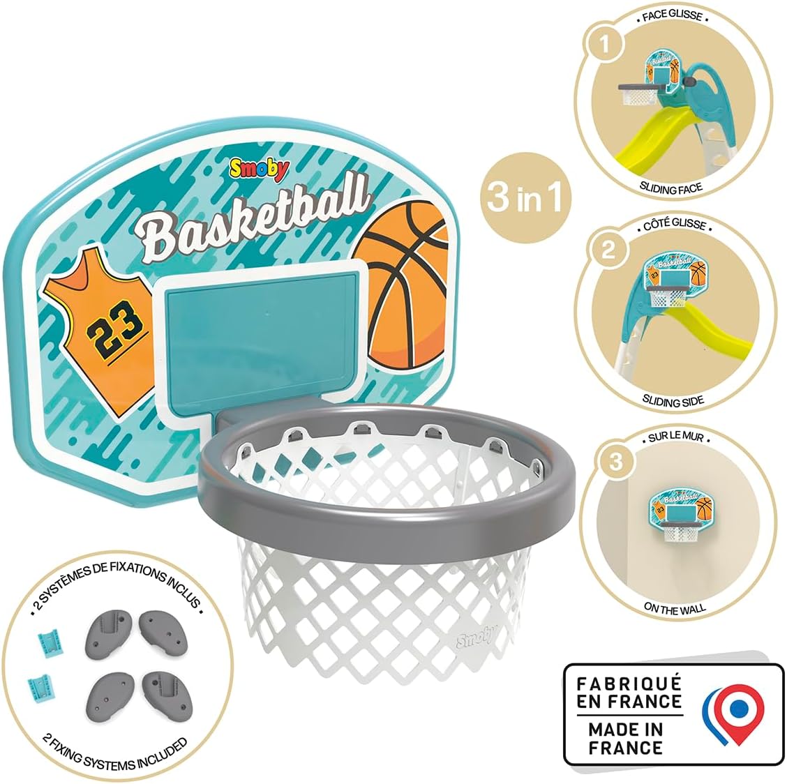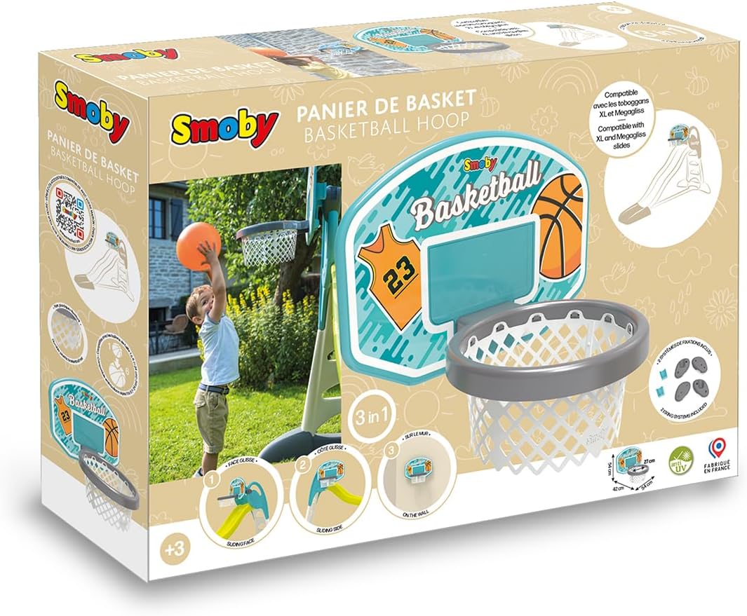 Grazie al cestino da basket 3 in 1, il tuo scivolo si trasforma in un vero parco giochi. Perfetto per spendere i vostri bambini Il cestino si posiziona in 3 modi: - Sul lato per continuare a godersi gli scivoli mentre si utilizza l'altezza dello scivolo. - Fronte: come nei giochi arcade raccogliendo la palla ai suoi piedi - Sul muro: grazie ai suoi ganci da parete in dotazione potrai posizionare direttamente il cestino all'altezza desiderata e adattarlo ai tuoi bambini a partire dai 3 anni. Questo accessorio è compatibile con i nostri scivoli XL e Super Megagliss e durerà nel tempo soprattutto grazie alla sua rete morbida e resistente. Diametro arco: 33 cm. Palla non inclusa. Trattamento anti-uv. Fabbricazione francese.